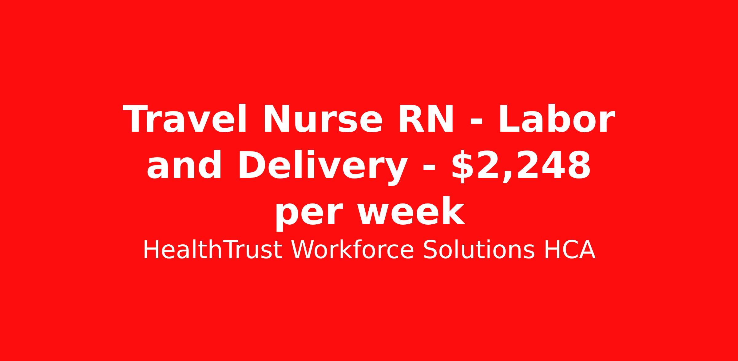 HealthTrust Workforce Solutions HCA is seeking a travel nurse RN Labor and Delivery for a travel nursing job in Richmond, Virginia. Job Description & Requirements Specialty: Labor and Delivery Discipline: RN Duration: 13 weeks 36 hours per week Shift: 12 hours, nights Employment Type: Travel Must have ACLS, BLS, NRP, AWHONN, Fetal Monitoring (980409) About HealthTrust Workforce Solutions HCA At HealthTrust Workforce Solutions, healthcare is not just about the four walls of a facility but about the people who provide and receive care. Our focus is on empowering healthcare professionals to deliver exceptional patient experiences by providing them with the necessary skills, tools, and support. We partner with healthcare facilities nationwide to ensure that the right professionals are in the right roles. We prioritize our clinicians by giving them a voice and access to opportunities to fulfill their mission of improving lives by providing quality patient care. We are committed to our core values of Trust, Innovation, Adaptability, Courage, and Accountability. We are dedicated to positively impacting the healthcare industry by providing first-priority access to more than 200,000 jobs nationwide to our healthcare professionals. Join us and be part of the HealthTrust family, where you can make a difference every day. We embrace our changing environment, and we maintain a culture that has a rich tradition of transforming itself to meet the challenges of the future. MISSION STATEMENT While putting great people in the right roles is essential, our mission is far greater. We want our clinicians to be part of the HealthTrust family, where healthcare professionals have a voice and are empowered with the right tools and opportunities to fulfill their personal mission of improving lives. Plus, as a preferred partner to thousands of top-performing hospitals, we provide our healthcare professionals with first-priority access to more than 200,000 jobs nationwide. Benefits Dental benefits Vision benefits Referral bonus Continuing Education Life insurance