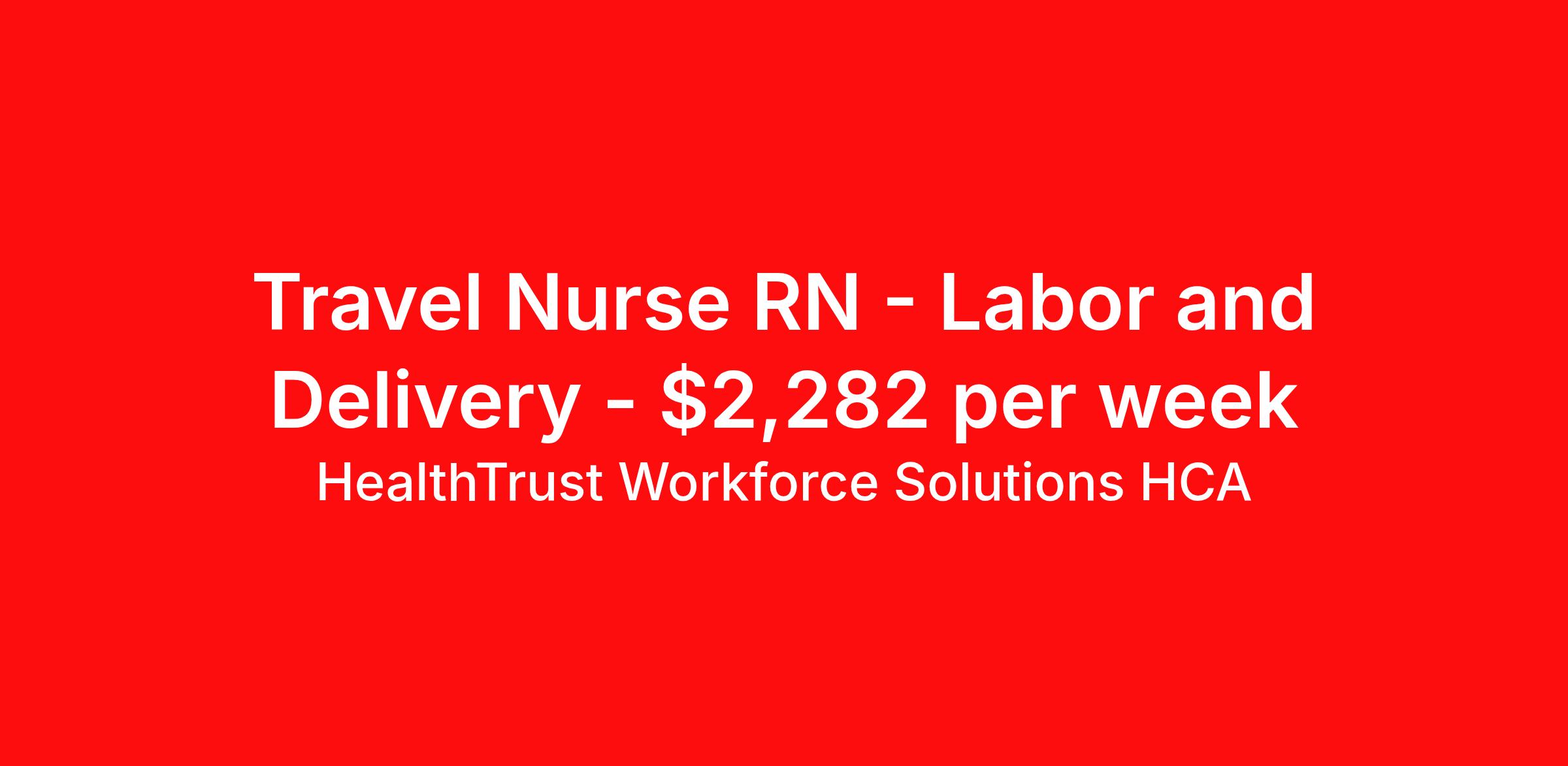 HealthTrust Workforce Solutions HCA is seeking a travel nurse RN Labor and Delivery for a travel nursing job in Wichita, Kansas. Job Description & Requirements Specialty: Labor and Delivery Discipline: RN Start Date: 04/20/2026 Duration: 13 weeks 36 hours per week Shift: 12 hours, nights Employment Type: Travel Must have : candidates without these skills will not be considered for the role. Labor and delivery experience at least 2 years Circulate C-sections Preferred or nice to have : candidates with these skills will be considered first. Labor and delivery experience more than 2 years High risk LDR experience List typical procedures performed on unit(s): C-sections, Inductions, AROM, IUPC, DFM, Doppler Number of Beds -26 Number of Staff – 112 Type of staff: Day Shift – 1 CNC(TL), 14 nurses, 2-3 ST, 2 unit clerks Night Shift – 1 CNC(TL),, 12 nurses, 2 ST, 1 unit clerk Patient Ratios – 1:1 high risk labor&c-sections; 1:2 antepartum, PPROM, PTL on mag, PP on mag; 1:3 PP mag no baby, Out patients Type of equipment – Alaris pumps, PCA pumps, Monica Novii telemetry, CPN(GE) monitor EMR – CPN gold, Meditech About HealthTrust Workforce Solutions HCA At HealthTrust Workforce Solutions, healthcare is not just about the four walls of a facility but about the people who provide and receive care. Our focus is on empowering healthcare professionals to deliver exceptional patient experiences by providing them with the necessary skills, tools, and support. We partner with healthcare facilities nationwide to ensure that the right professionals are in the right roles. We prioritize our clinicians by giving them a voice and access to opportunities to fulfill their mission of improving lives by providing quality patient care. We are committed to our core values of Trust, Innovation, Adaptability, Courage, and Accountability. We are dedicated to positively impacting the healthcare industry by providing first-priority access to more than 200,000 jobs nationwide to our healthcare professionals. Join us and be part of the HealthTrust family, where you can make a difference every day. We embrace our changing environment, and we maintain a culture that has a rich tradition of transforming itself to meet the challenges of the future. MISSION STATEMENT While putting great people in the right roles is essential, our mission is far greater. We want our clinicians to be part of the HealthTrust family, where healthcare professionals have a voice and are empowered with the right tools and opportunities to fulfill their personal mission of improving lives. Plus, as a preferred partner to thousands of top-performing hospitals, we provide our healthcare professionals with first-priority access to more than 200,000 jobs nationwide. Benefits Dental benefits Vision benefits Referral bonus Continuing Education Life insurance
