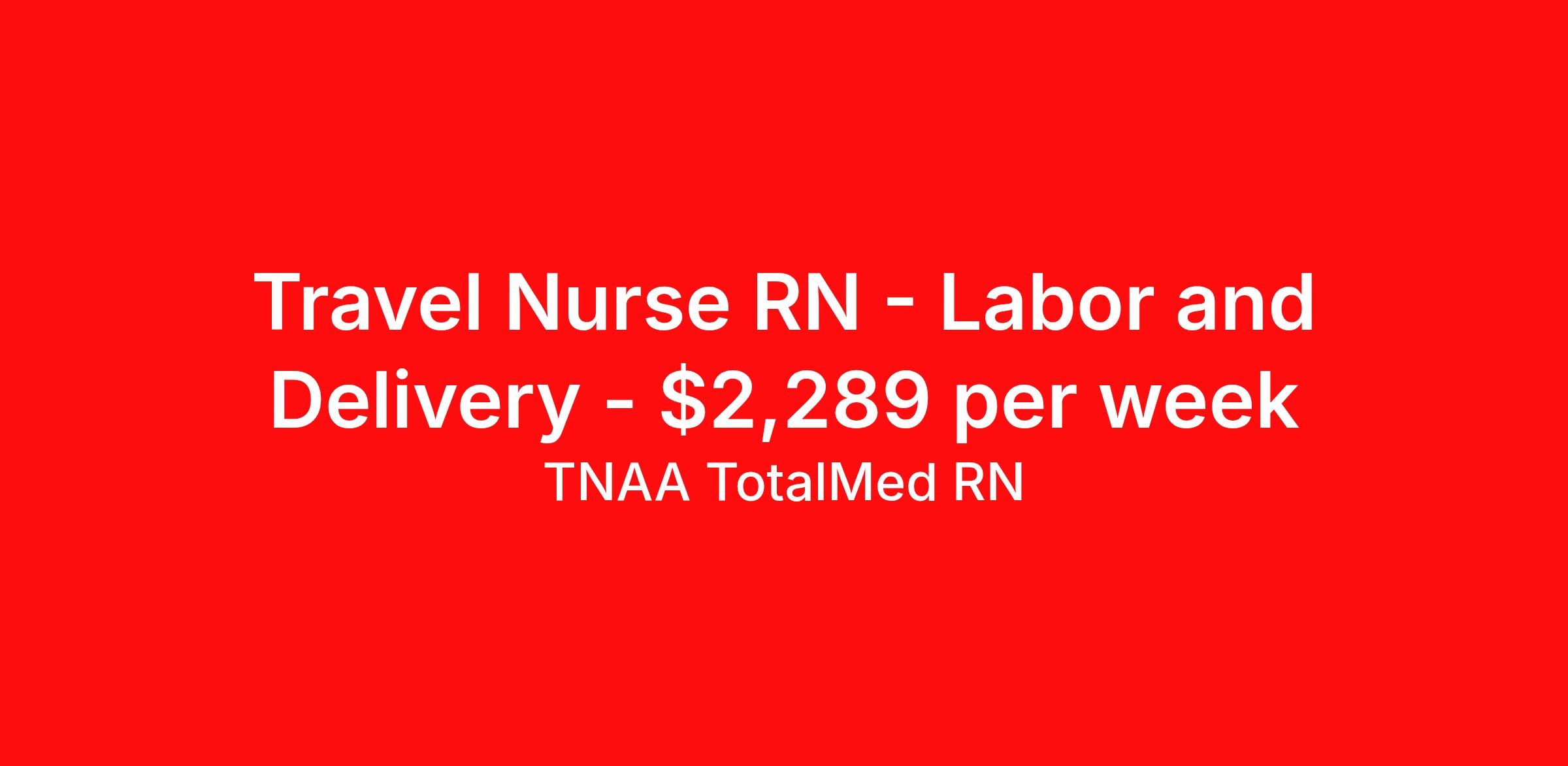 TNAA TotalMed RN is seeking a travel nurse RN Labor and Delivery for a travel nursing job in Manchester, Connecticut. Job Description & Requirements Specialty: Labor and Delivery Discipline: RN Start Date: 03/23/2026 Duration: 13 weeks 36 hours per week Shift: 12 hours, nights Employment Type: Travel We're looking for Labor and Delivery RNs for an immediate travel nurse opening in Manchester, CT. The right RN should have 3 years' recent acute care experience. Read below for more requirements. L&D Travel Nurses provide care and support for women before, during and after delivery of a baby. L&D RNs must ensure that the medical as well as emotional needs of their patients are met at all times throughout the birthing process. As an L&D RN, you'll be responsible for assisting physicians when epidurals or pain medications are administered, episiotomies are performed, or when the patient requires preparation for a cesarean delivery. As an L&D Travel Nurse, you should be prepared to perform the following tasks: Stay with and monitor patient throughout labor. Monitor contractions and help patients with breathing techniques. Check cervix periodically to monitor progression/lack of dilation. Ensure beds are kept clean and dry; clean up bodily fluids expelled before and after birthing process. Aid physician with drapes, gloves, gowns, delivery instruments, etc. Immediate care of newborn. L&D Travel Nurses should be able to stand and walk for long periods of time, as well as bend, lean and stoop without difficulty. RNs should be able to easily lift 20 pounds. Moving or lifting of patients may require lifting of up to 50 pounds at times. Because of the fast-paced environment, L&D RNs must possess good skills for coping with stress and be able to relate to people of all ages and backgrounds. Requirements*: ACLS, BLS, EFM, NRP, 2 Years * Additional certifications may be required before beginning an assignment. TotalMed Travel Job ID 1370667. Pay package is based on 12 hour shifts and 36 hours per week (subject to confirmation) with tax-free stipend amount to be determined. Posted job title: Labor and Delivery - LD RN - Travel Nurse About TNAA TotalMed RN TotalMed is a Top Ten, travel nursing and healthcare staffing agency with the mission of igniting purpose in healthcare. The organization staffs nurses, therapists, pharmacists, and other clinicians of all specialties in all 50 states. They offer local and travel jobs and match caregivers with the right organization to assist both facilities and patients. As an organization, they focus on putting highly-skilled staff into facilities to ensure adequate staffing for a better patient experience. TotalMed specializes in recruiting and placing healthcare professionals in travel, PRN, and permanent positions across the country in Nursing and Allied Health. Throughout 2020, the organization filled roles at even the most short-staffed facilities during the most challenging time in healthcare. By matching the right travel healthcare professional with the right organization, TotalMed continues to offer a lifeline to facilities and their patients. Benefits Weekly pay Guaranteed Hours Continuing Education 401k retirement plan Sick pay Wellness and fitness programs Referral bonus Employee assistance programs Medical benefits Dental benefits Vision benefits Benefits start day 1