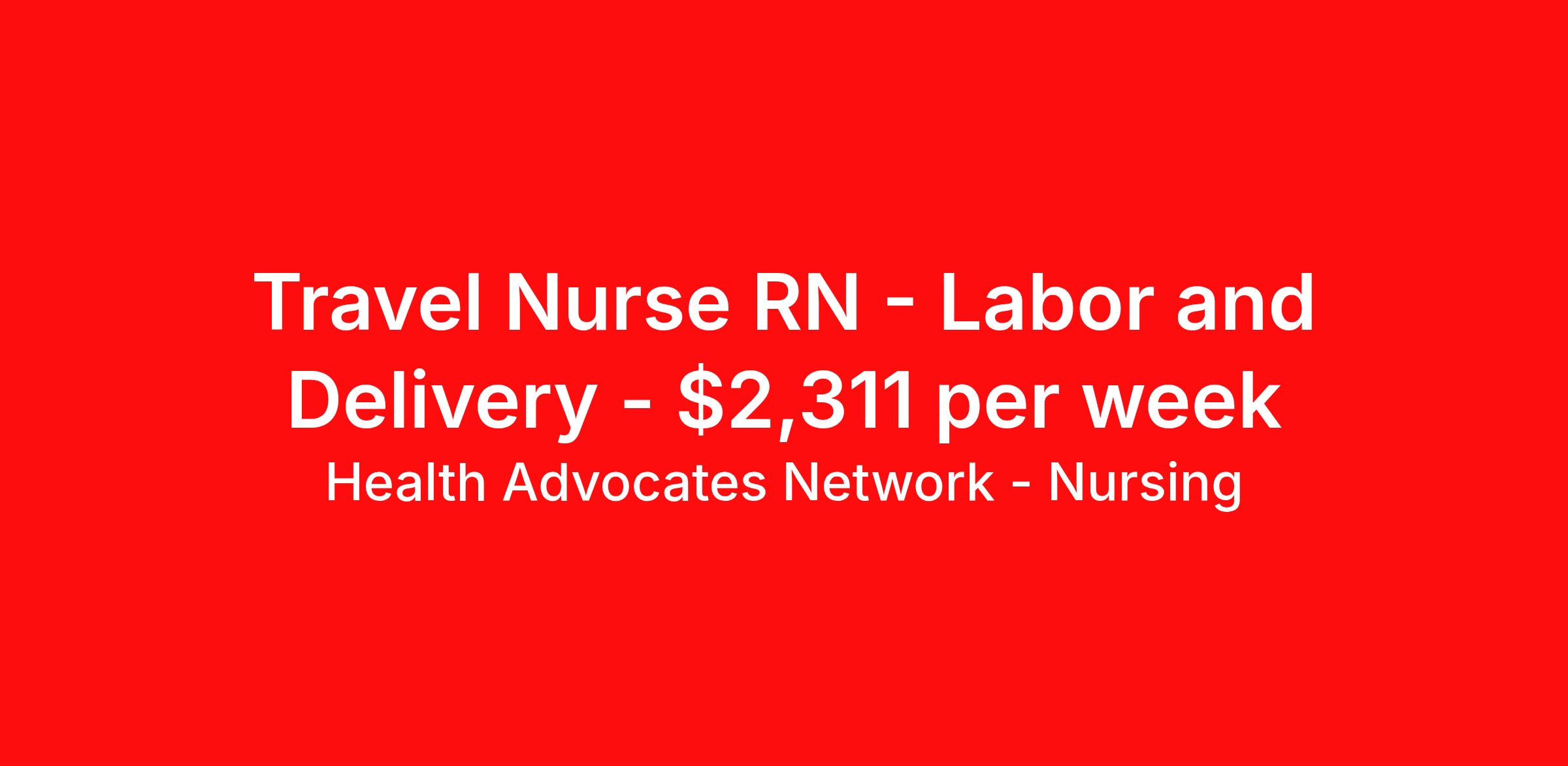Health Advocates Network - Nursing is seeking a travel nurse RN Labor and Delivery for a travel nursing job in Attleboro, Massachusetts. Job Description & Requirements Specialty: Labor and Delivery Discipline: RN Start Date: 04/06/2026 Duration: 10 weeks 36 hours per week Shift: 12 hours, nights Employment Type: Travel HANStaff Job ID 523756. Pay package is based on 12 hour shifts and 36 hours per week (subject to confirmation) with tax-free stipend amount to be determined. Posted job title: RN - L & D About Health Advocates Network - Nursing Health Advocates Network was founded on the basis of a shared aspiration, to improve the way healthcare staffing is done. We are a company established and led by nurses. Our flexible approach enables us to develop solutions customized to your specific needs. From short- and long-term travel contracts to local and per diem assignments and more, we are here to get you to your next adventure! By solving challenges, providing the best placements, and advocating for you, we stand to help you thrive and pave the path forward in your career. Click on the videos below to learn more about our values!