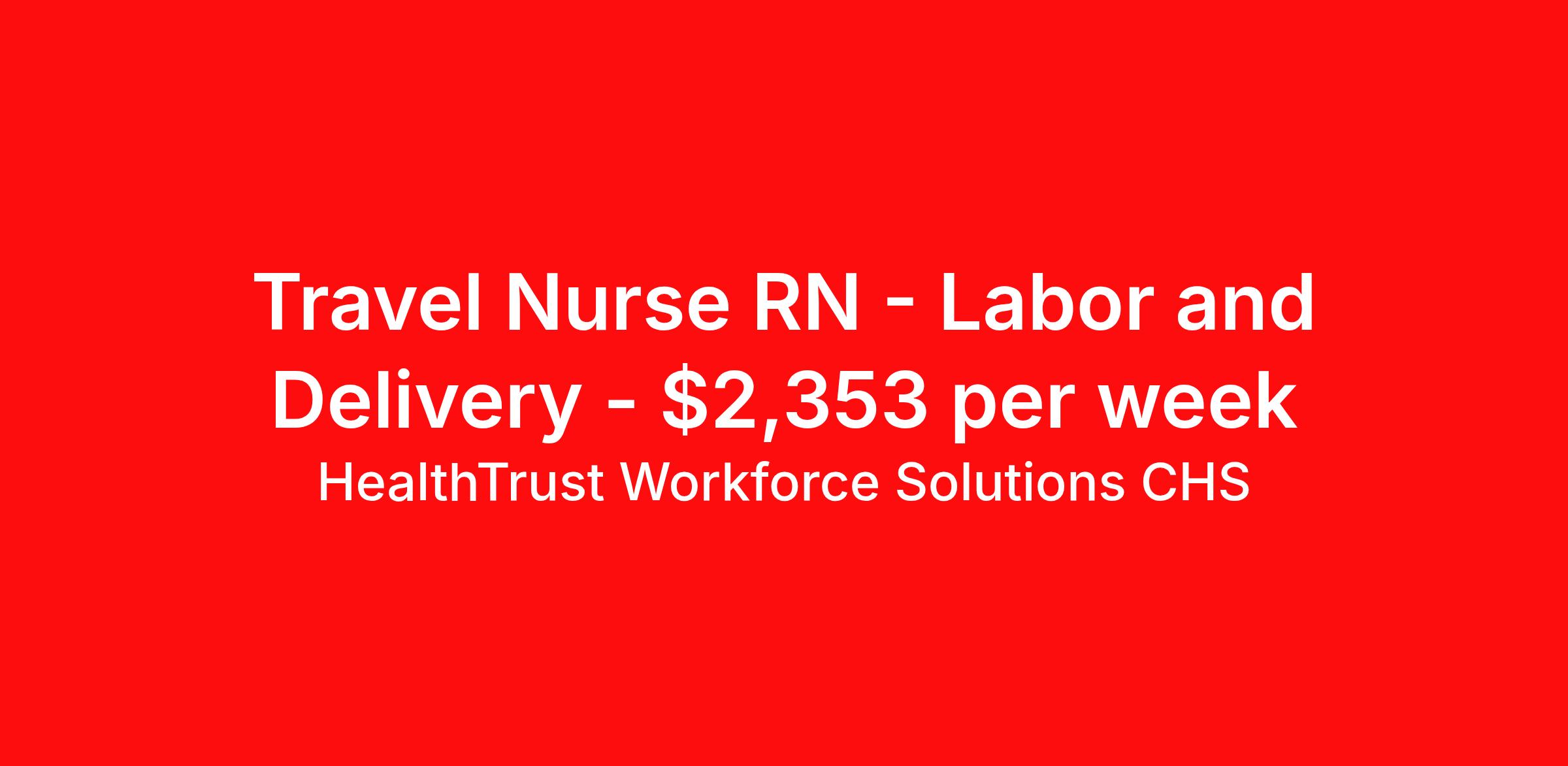 HealthTrust Workforce Solutions CHS is seeking a travel nurse RN Labor and Delivery for a travel nursing job in Bentonville, Arkansas. Job Description & Requirements Specialty: Labor and Delivery Discipline: RN Duration: 13 weeks 36 hours per week Shift: 12 hours, days, nights Employment Type: Travel NW Medical Center Bentonville Travel L&D RN Start: ASAP Duration: 13 weeks Shift: Days or Nights 6:45-7:15 Requirements BLS, ACLS, NRP, 2 years L&D experience, post partum/antepartum experience; perm address 50 mi from facilit