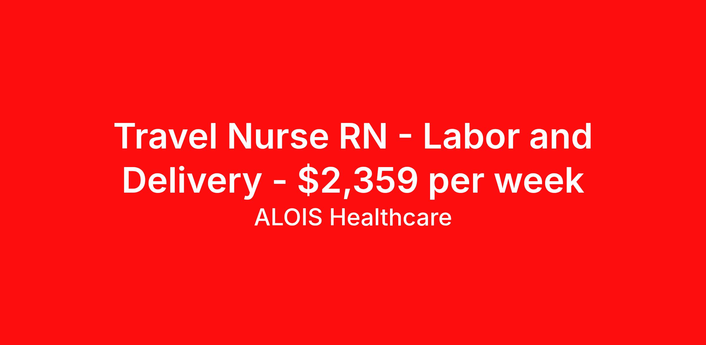 ALOIS Healthcare is seeking a travel nurse RN Labor and Delivery for a travel nursing job in Columbus, Ohio. Job Description & Requirements Specialty: Labor and Delivery Discipline: RN Start Date: 05/04/2026 Duration: 13 weeks 36 hours per week Shift: 12 hours, days Employment Type: Travel A labor and delivery nurse works with mothers during the final stages of pregnancy helping with birthing, monitoring the mother's vital signs, and becoming astute in signs and symptoms of possible complications. They are involved in patient education and addressing the psychosocial needs of mothers after delivery. ALOIS Healthcare Job ID 17980289. Pay package is based on 12 hour shifts and 36.0 hours per week (subject to confirmation) with tax-free stipend amount to be determined. Posted job title: RN Labor and Delivery About ALOIS Healthcare Why ALOIS Healthcare? ALOIS means “brave warrior” and that’s what you are- Warrior in Scrubs! Just as you advocate for your patients, we will advocate for you. The pay you deserve. The support you need. We’re in your corner for every battle – because you shouldn’t settle for anything less when it comes to your career. We offer: · Industry-leading pay Generous cost of living and housing stipends · Opportunities for referral, sign-on, and extension bonuses · Weekly health insurance or health insurance Marketplace weekly bonus · Continuing education credits We’re proud to be recognized globally as a certified minority-owned staffing supplier. At ALOIS Healthcare: · Everyone Matters · We are Performance Driven · We are Open, Honest and Direct · We are Transparent · We are Inclusive · We Do the Right Thing We care about you - and your success is our success.