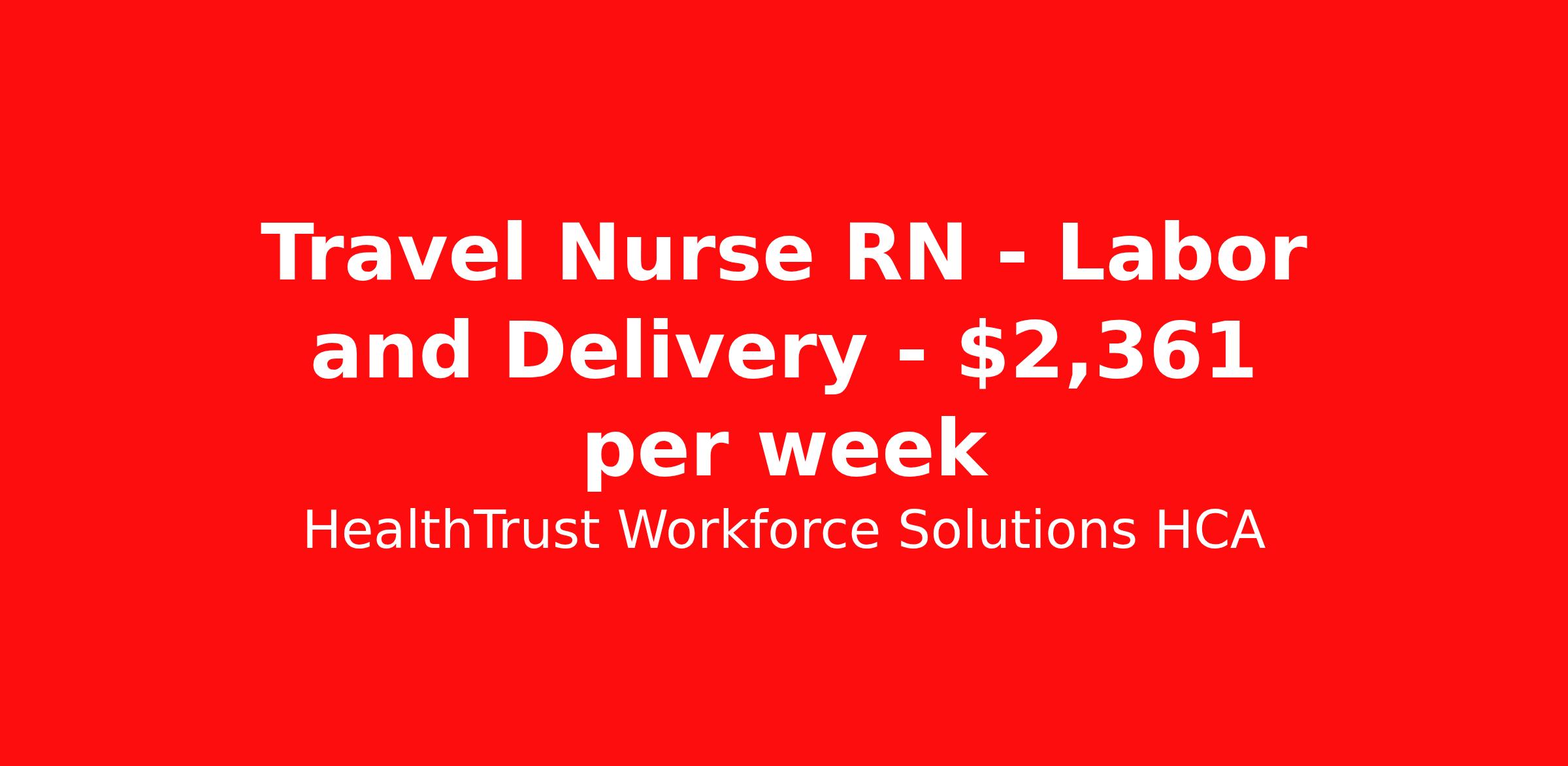 HealthTrust Workforce Solutions HCA is seeking a travel nurse RN Labor and Delivery for a travel nursing job in Rutherfordton, North Carolina. Job Description & Requirements Specialty: Labor and Delivery Discipline: RN Start Date: 04/20/2026 Duration: 13 weeks 36 hours per week Shift: 12 hours, nights Employment Type: Travel About HealthTrust Workforce Solutions HCA At HealthTrust Workforce Solutions, healthcare is not just about the four walls of a facility but about the people who provide and receive care. Our focus is on empowering healthcare professionals to deliver exceptional patient experiences by providing them with the necessary skills, tools, and support. We partner with healthcare facilities nationwide to ensure that the right professionals are in the right roles. We prioritize our clinicians by giving them a voice and access to opportunities to fulfill their mission of improving lives by providing quality patient care. We are committed to our core values of Trust, Innovation, Adaptability, Courage, and Accountability. We are dedicated to positively impacting the healthcare industry by providing first-priority access to more than 200,000 jobs nationwide to our healthcare professionals. Join us and be part of the HealthTrust family, where you can make a difference every day. We embrace our changing environment, and we maintain a culture that has a rich tradition of transforming itself to meet the challenges of the future. MISSION STATEMENT While putting great people in the right roles is essential, our mission is far greater. We want our clinicians to be part of the HealthTrust family, where healthcare professionals have a voice and are empowered with the right tools and opportunities to fulfill their personal mission of improving lives. Plus, as a preferred partner to thousands of top-performing hospitals, we provide our healthcare professionals with first-priority access to more than 200,000 jobs nationwide. Benefits Dental benefits Vision benefits Referral bonus Continuing Education Life insurance