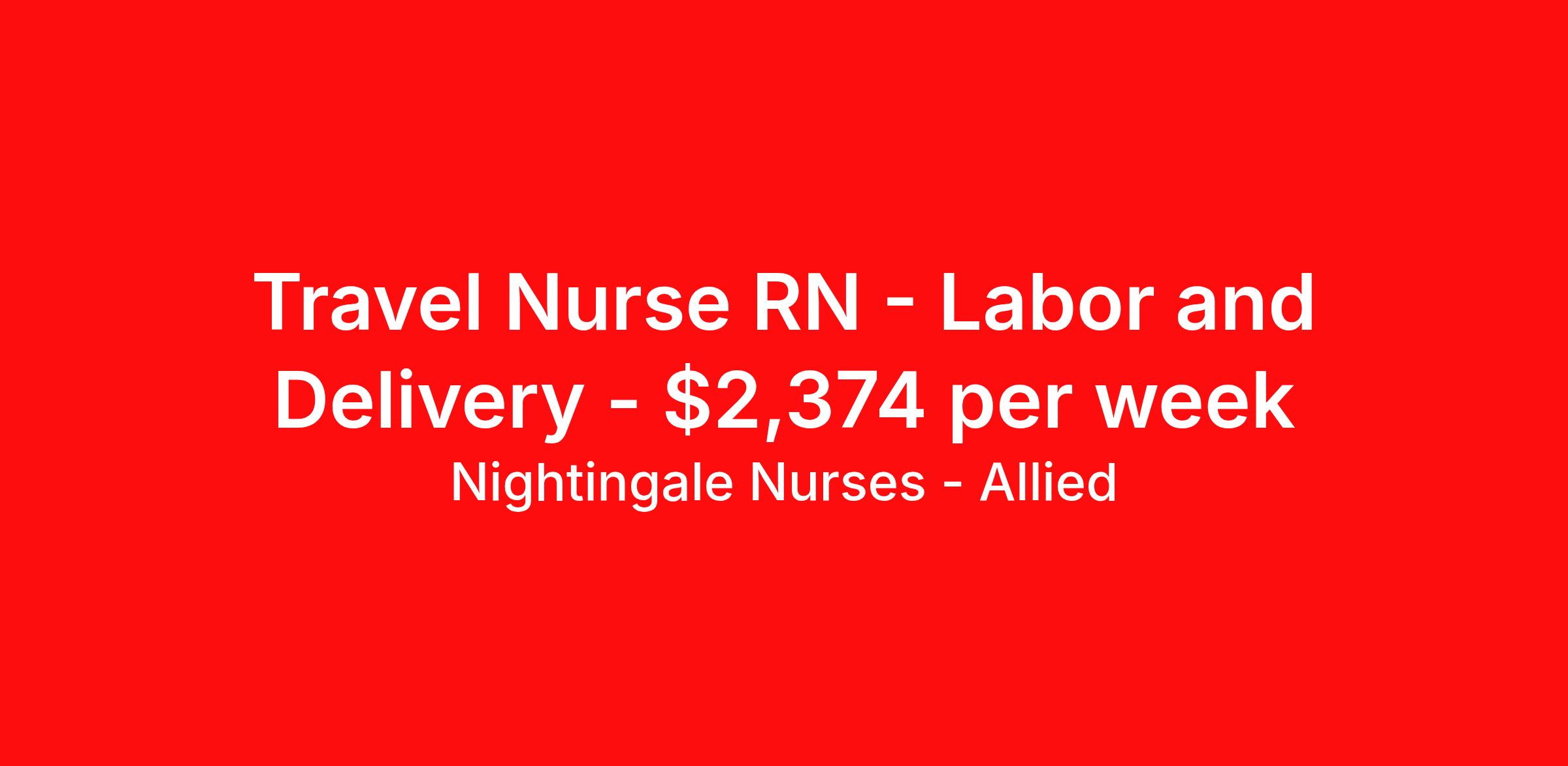 Nightingale Nurses - Allied is seeking a travel nurse RN Labor and Delivery for a travel nursing job in Cape Coral, Florida. Job Description & Requirements Specialty: Labor and Delivery Discipline: RN Start Date: 03/27/2026 Duration: 13 weeks 36 hours per week Shift: 12 hours, nights Employment Type: Travel