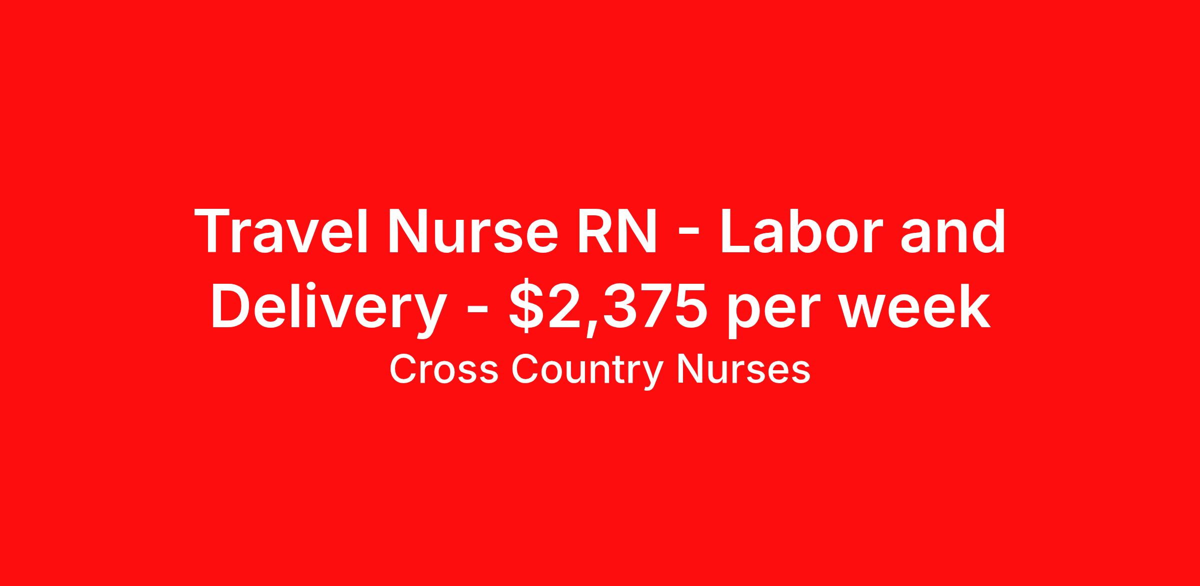 Cross Country Nurses is seeking a travel nurse RN Labor and Delivery for a travel nursing job in Philadelphia, Pennsylvania. Job Description & Requirements Specialty: Labor and Delivery Discipline: RN Start Date: 04/06/2026 Duration: 13 weeks 36 hours per week Shift: 12 hours, nights Employment Type: Travel Job Description As a labor and delivery nurse (RN L&D), you will care for women and newborns during the antepartum, intrapartum, postpartum, and neonatal stages of childbirth. This includes coaching women throughout the birthing process, monitoring the mother's and baby's vitals, administering medication and managing potential complications that may arise. You may also be called upon to assist in caesarian sections. You will provide education and guidance to new mothers in regard to recovery and caring for their infants. Minimum Requirements At least 1 year of recent acute care experience in specialty Active RN license Benefits The benefits of taking a travel nursing job with Cross Country include: Private housing or generous housing allowance Comprehensive health insurance with prescription coverage Dependent health insurance with prescription coverage Competitive salaries Referral bonuses Travel reimbursement 401(k) retirement plan Direct deposit/free checking Unlimited free CE credits Posted Date: 2026-02-28 Cross Country Job ID 1218716. Pay package is based on 12 hour shifts and 36 hours per week (subject to confirmation) with tax-free stipend amount to be determined. Posted job title: Registered Nurse / Labor And Delivery Department About Cross Country Nurses You care for others — we’re here to care for you. At Cross Country, we know travel nursing is about more than just the job. It’s about building a career that supports your lifestyle, your values, and your impact. We offer competitive pay, full benefits, and 24/7 support from a team that truly understands what it means to be on the front lines. Wherever your journey takes you, we’re with you every step of the way. Let’s build your best life — one assignment at a time. Benefits 401k retirement plan Referral bonus