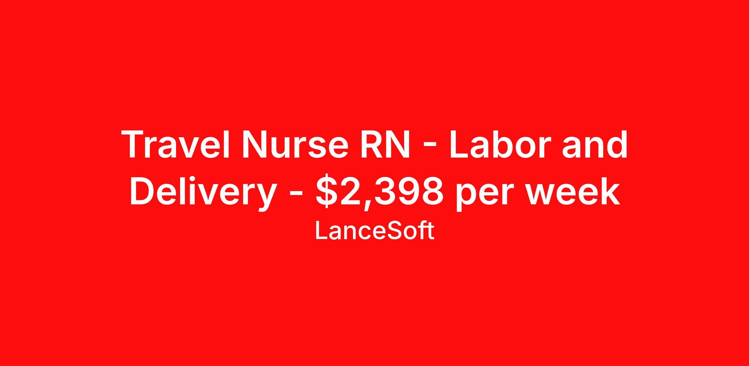 Travel Nurse RN - Labor and Delivery - $2,398 per week