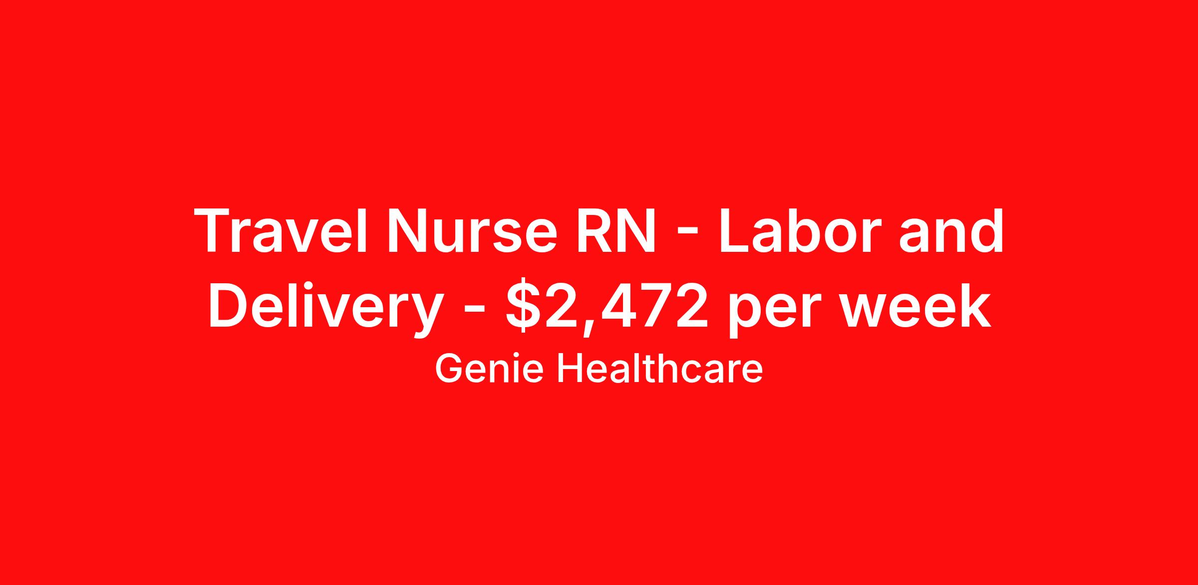 Genie Healthcare is seeking a travel nurse RN Labor and Delivery for a travel nursing job in Flemington, New Jersey. Job Description & Requirements Specialty: Labor and Delivery Discipline: RN Start Date: 03/23/2026 Duration: 52 weeks 36 hours per week Shift: 12 hours, nights Employment Type: Travel Genie Healthcare is looking for a RN to work in Labor & Delivery (L&D) for a 51.57 weeks travel assignment located in Flemington, NJ for the Shift (3x12 nights, 19:00:00-07:00:00, 12.00-3). Pay and benefits packages are estimated based on client bill rate at time the job was posted. These rates are subject to change. Exact pay and benefits vary based on several things, including, but not limited to, guaranteed hours, client changes in bill rate, experience, etc. Benefits: Medical Insurance, Dental Insurance, Vision Insurance, 401(k) with company matching (50% up to 6% of what you contribute) Genie Healthcare Job ID 17757318. Pay package is based on 12 hour shifts and 36.0 hours per week (subject to confirmation) with tax-free stipend amount to be determined. Posted job title: RN:Labor & Delivery (L&D),19:00:00-07:00:00 About Genie Healthcare Genie Healthcare is one of the fastest growing Nurse Travel Agencies in the USA. Genie serves hundreds of facilities and has over 4000 current travel RN contracts open at any given time. Genie provides travel RN’s flexibility, support, top pay scale, housing and the 1 rated, multi-state health insurance coverage. Genie Healthcare carries with it a commitment to providing a comprehensive level of service and quality care. Growing from a small team of eager recruiters to a company with satisfied clients in nearly every corner of the nation, delivering excellence in patient and customer care is the key to Genie’s success. The management team has 20 years of experience in workforce solutions and staffing in medical and non-medical fields, roles ranging from Clerical job to Cardiologist to software developer to CEO.