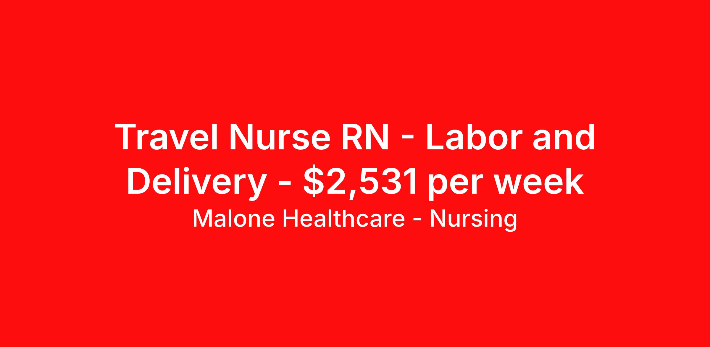 Malone Healthcare - Nursing is seeking a travel nurse RN Labor and Delivery for a travel nursing job in Council Bluffs, Iowa. Job Description & Requirements Specialty: Labor and Delivery Discipline: RN Start Date: 03/19/2026 Duration: 13 weeks 36 hours per week Shift: 12 hours, nights Employment Type: Travel About Malone Healthcare - Nursing With a commitment to providing a higher standard of service and experience in patient care, Malone Healthcare places expert nurses and allied health professionals in rewarding careers throughout the United States. As a leading healthcare staffing agency, Malone’s focus on compliance and integrity translates to a seamless experience for our team members and partner facilities. When you work with Malone Healthcare, you can rely on over 50 years of proven experience placing exceptional professionals in quality healthcare settings. Benefits Weekly pay Holiday Pay Guaranteed Hours Continuing Education 401k retirement plan Pet insurance Referral bonus Medical benefits Dental benefits Vision benefits License and certification reimbursement Life insurance