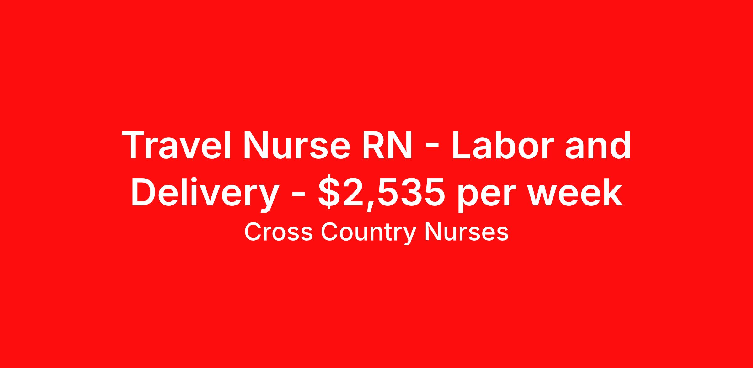 Cross Country Nurses is seeking a travel nurse RN Labor and Delivery for a travel nursing job in Ottumwa, Iowa. Job Description & Requirements Specialty: Labor and Delivery Discipline: RN Start Date: 03/30/2026 Duration: 13 weeks 36 hours per week Shift: 12 hours, nights Employment Type: Travel Job Description As a labor and delivery nurse (RN L&D), you will care for women and newborns during the antepartum, intrapartum, postpartum, and neonatal stages of childbirth. This includes coaching women throughout the birthing process, monitoring the mother's and baby's vitals, administering medication and managing potential complications that may arise. You may also be called upon to assist in caesarian sections. You will provide education and guidance to new mothers in regard to recovery and caring for their infants. Minimum Requirements At least 1 year of recent acute care experience in specialty Active RN license Benefits The benefits of taking a travel nursing job with Cross Country include: Private housing or generous housing allowance Comprehensive health insurance with prescription coverage Dependent health insurance with prescription coverage Competitive salaries Referral bonuses Travel reimbursement 401(k) retirement plan Direct deposit/free checking Unlimited free CE credits Cross Country Job ID 1232025. Pay package is based on 12 hour shifts and 36 hours per week (subject to confirmation) with tax-free stipend amount to be determined. Posted job title: Registered Nurse / Labor And Delivery Department About Cross Country Nurses You care for others — we’re here to care for you. At Cross Country, we know travel nursing is about more than just the job. It’s about building a career that supports your lifestyle, your values, and your impact. We offer competitive pay, full benefits, and 24/7 support from a team that truly understands what it means to be on the front lines. Wherever your journey takes you, we’re with you every step of the way. Let’s build your best life — one assignment at a time. Benefits 401k retirement plan Referral bonus