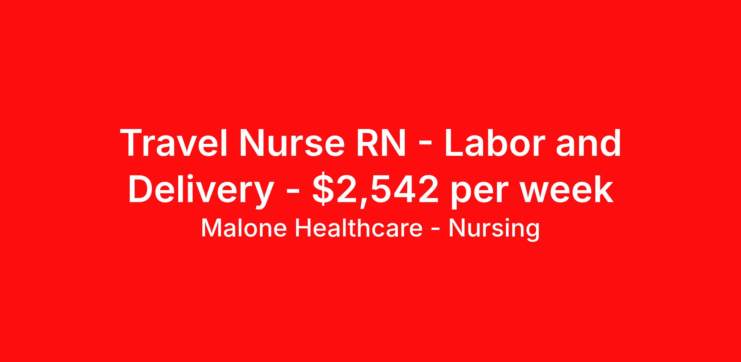 Malone Healthcare - Nursing is seeking a travel nurse RN Labor and Delivery for a travel nursing job in Uniontown, Pennsylvania. Job Description & Requirements Specialty: Labor and Delivery Discipline: RN Start Date: 04/13/2026 Duration: 13 weeks 36 hours per week Shift: 12 hours, rotating Employment Type: Travel About Malone Healthcare - Nursing With a commitment to providing a higher standard of service and experience in patient care, Malone Healthcare places expert nurses and allied health professionals in rewarding careers throughout the United States. As a leading healthcare staffing agency, Malone’s focus on compliance and integrity translates to a seamless experience for our team members and partner facilities. When you work with Malone Healthcare, you can rely on over 50 years of proven experience placing exceptional professionals in quality healthcare settings. Benefits Weekly pay Holiday Pay Guaranteed Hours Continuing Education 401k retirement plan Pet insurance Referral bonus Medical benefits Dental benefits Vision benefits License and certification reimbursement Life insurance
