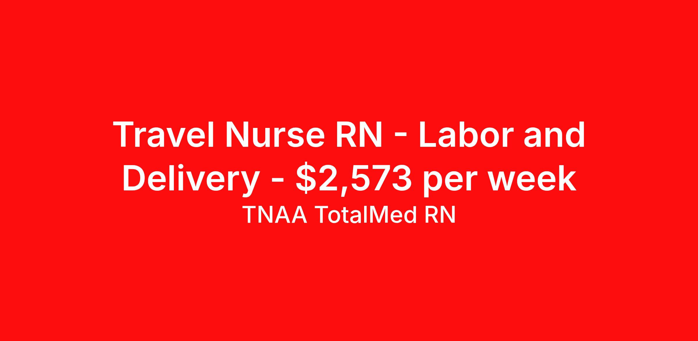 TNAA TotalMed RN is seeking a travel nurse RN Labor and Delivery for a travel nursing job in Ellsworth, Maine. Job Description & Requirements Specialty: Labor and Delivery Discipline: RN Start Date: 04/27/2026 Duration: 13 weeks 36 hours per week Shift: 12 hours, nights Employment Type: Travel We're looking for Labor and Delivery RNs for an immediate travel nurse opening in Ellsworth, ME. The right RN should have 3 years' recent acute care experience. Read below for more requirements. L&D Travel Nurses provide care and support for women before, during and after delivery of a baby. L&D RNs must ensure that the medical as well as emotional needs of their patients are met at all times throughout the birthing process. As an L&D RN, you'll be responsible for assisting physicians when epidurals or pain medications are administered, episiotomies are performed, or when the patient requires preparation for a cesarean delivery. As an L&D Travel Nurse, you should be prepared to perform the following tasks: Stay with and monitor patient throughout labor. Monitor contractions and help patients with breathing techniques. Check cervix periodically to monitor progression/lack of dilation. Ensure beds are kept clean and dry; clean up bodily fluids expelled before and after birthing process. Aid physician with drapes, gloves, gowns, delivery instruments, etc. Immediate care of newborn. L&D Travel Nurses should be able to stand and walk for long periods of time, as well as bend, lean and stoop without difficulty. RNs should be able to easily lift 20 pounds. Moving or lifting of patients may require lifting of up to 50 pounds at times. Because of the fast-paced environment, L&D RNs must possess good skills for coping with stress and be able to relate to people of all ages and backgrounds. Requirements*: ACLS, BLS, NRP, STABLE, FHM, 2 Years * Additional certifications may be required before beginning an assignment. TotalMed Travel Job ID 1388759. Pay package is based on 12 hour shifts and 36 hours per week (subject to confirmation) with tax-free stipend amount to be determined. Posted job title: Labor and Delivery - LD RN - Travel Nurse About TNAA TotalMed RN TotalMed is a Top Ten, travel nursing and healthcare staffing agency with the mission of igniting purpose in healthcare. The organization staffs nurses, therapists, pharmacists, and other clinicians of all specialties in all 50 states. They offer local and travel jobs and match caregivers with the right organization to assist both facilities and patients. As an organization, they focus on putting highly-skilled staff into facilities to ensure adequate staffing for a better patient experience. TotalMed specializes in recruiting and placing healthcare professionals in travel, PRN, and permanent positions across the country in Nursing and Allied Health. Throughout 2020, the organization filled roles at even the most short-staffed facilities during the most challenging time in healthcare. By matching the right travel healthcare professional with the right organization, TotalMed continues to offer a lifeline to facilities and their patients. Benefits Weekly pay Guaranteed Hours Continuing Education 401k retirement plan Sick pay Wellness and fitness programs Referral bonus Employee assistance programs Medical benefits Dental benefits Vision benefits Benefits start day 1