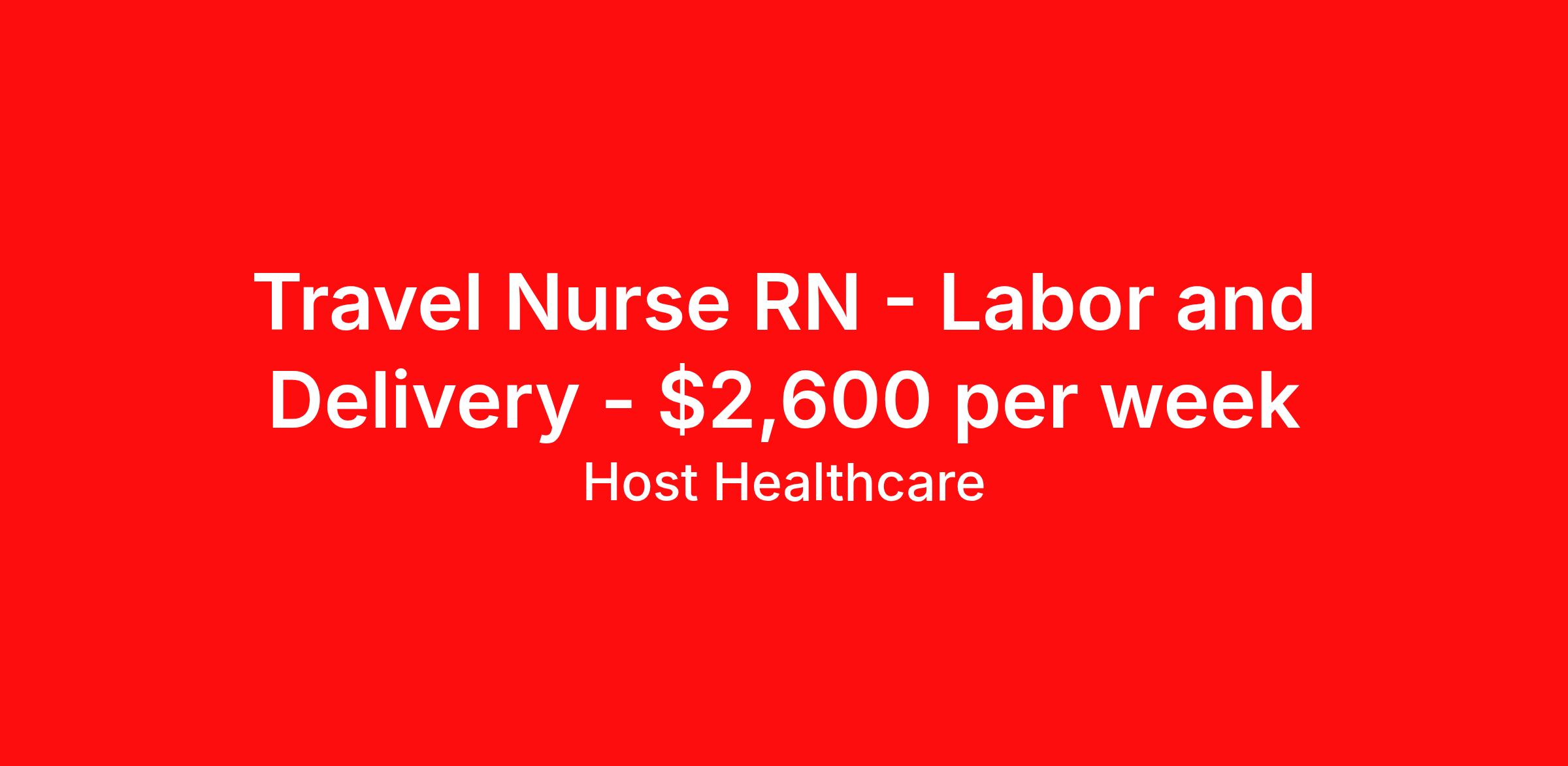 Host Healthcare is seeking a travel nurse RN Labor and Delivery for a travel nursing job in Fort Wayne, Indiana. Job Description & Requirements Specialty: Labor and Delivery Discipline: RN Start Date: 04/20/2026 Duration: 13 weeks 36 hours per week Shift: 12 hours, nights Employment Type: Travel Host Healthcare Job ID a1fVX000002xet7YAA. Pay package is based on 12 hour shifts and 36 hours per week (subject to confirmation) with tax-free stipend amount to be determined. Posted job title: RN - Obstetrics & Gynecology About Host Healthcare At Host Healthcare, we provide a truly comfortable experience as you explore your travel nursing, therapy, or allied career. We make your travel healthcare journey easy by taking care of all the details, so you don’t have to. We are on a mission to help others live better and we do this by helping the healers of the world be as comfortable as possible. With access to tens of thousands of travel nursing, therapy, and allied jobs in all 50 states, our responsive and friendly recruiters find your dream position based on what’s important to you. During your assignment, get access to premium benefits, including Day 1 medical that continues up to 30 days between assignments, 401K matching, travel reimbursements, dedicated housing support, and more. We also offer 24/7 support from our team and access to our on-staff clinicians so you can feel comfortable and confident throughout your entire assignment. Travel comfortably with Host Healthcare. Benefits Referral bonus School loan reimbursement Vision benefits Wellness and fitness programs Company provided housing options License and certification reimbursement Life insurance Medical benefits Mileage reimbursement Pet insurance Discount program Employee assistance programs Guaranteed Hours Health savings account Holiday Pay 401k retirement plan Continuing Education Dental benefits