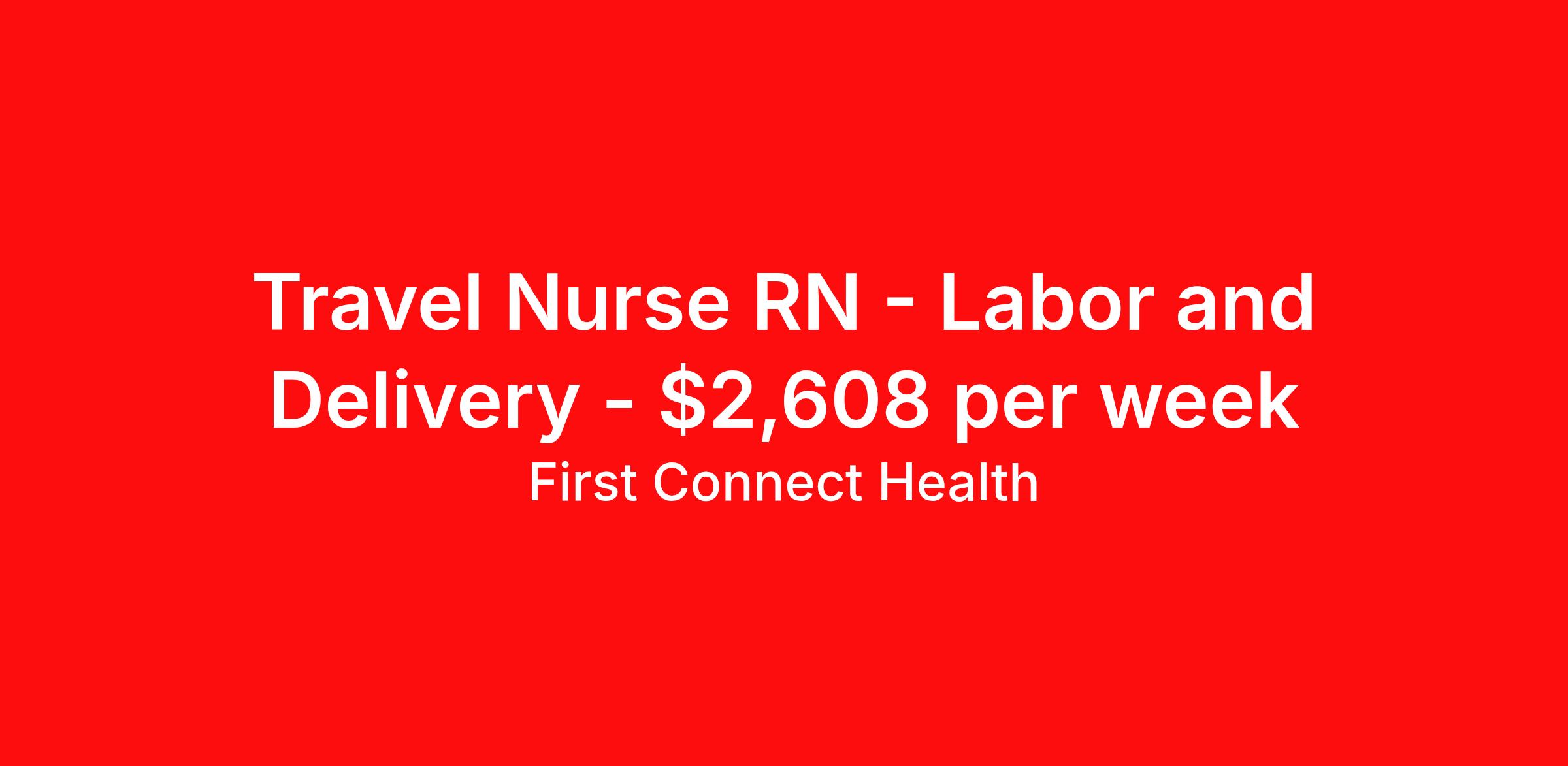 First Connect Health is seeking a travel nurse RN Labor and Delivery for a travel nursing job in Torrance, California. Job Description & Requirements Specialty: Labor and Delivery Discipline: RN Start Date: 03/31/2026 Duration: 13 weeks 36 hours per week Shift: 12 hours, days, nights Employment Type: Travel Must be flexible working weekends Precepting Skills preferred. Looking for a strong caregiver who can support PM shift. Local Rate Match - 50 mile radius Start date: ASAP Years of experience REQ: 3 First-timers accepted: Yes Weekend REQ: Depends on length of contract Certs REQ: ACLS, *AWHONN Advanced*, BCLS, NRP Is on-call REQ?: No Will this traveler need to float between like units? Yes, to mother baby Open to accommodating block schedule? Per manager discretion Locals accepted: Yes ACLS, AWHONN Advanced, BLS, C-EFM *will take in lieu of Advanced AWHONN , NRP 3219024 About First Connect Health At First Connect Health , we take pride in being a Joint Commission–certified healthcare staffing agency , headquartered in Newark, New Jersey. This prestigious certification is more than just a seal — it's a reflection of our commitment to excellence, safety, and quality in everything we do. By meeting the rigorous standards set by The Joint Commission, one of the most respected accrediting bodies in healthcare, we've demonstrated that our processes, compliance, and patient care standards are aligned with the highest levels of quality in the industry. But our dedication goes beyond certifications. Nurses choose First Connect Health because: ✅ Trust and Transparency: We foster honest communication, timely updates, and full transparency throughout your placement journey. ✅ Best Pay & Benefits: We offer industry-leading compensation packages, along with benefits that support your career goals. ✅ Flexibility & Choice: Whether you're seeking short-term assignments, long-term contracts, or local opportunities, we provide the flexibility to suit your preferences. ✅ Personalized Support: Our recruiters take the time to understand your needs, guiding you with care, respect, and responsiveness at every step. When you work with First Connect Health, you're not just another number — you're a valued professional. Join a team that’s focused on your success, your well-being, and your future in healthcare. Benefits Medical benefits Sick pay 401k retirement plan Weekly pay Referral bonus
