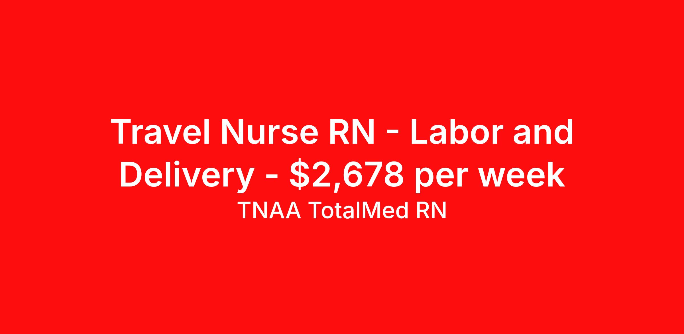 TNAA TotalMed RN is seeking a travel nurse RN Labor and Delivery for a travel nursing job in Pierre, South Dakota. Job Description & Requirements Specialty: Labor and Delivery Discipline: RN Duration: 13 weeks 36 hours per week Shift: 12 hours, nights Employment Type: Travel We're looking for Labor and Delivery RNs for an immediate travel nurse opening in Pierre, SD. The right RN should have 3 years' recent acute care experience. Read below for more requirements. L&D Travel Nurses provide care and support for women before, during and after delivery of a baby. L&D RNs must ensure that the medical as well as emotional needs of their patients are met at all times throughout the birthing process. As an L&D RN, you'll be responsible for assisting physicians when epidurals or pain medications are administered, episiotomies are performed, or when the patient requires preparation for a cesarean delivery. As an L&D Travel Nurse, you should be prepared to perform the following tasks: Stay with and monitor patient throughout labor. Monitor contractions and help patients with breathing techniques. Check cervix periodically to monitor progression/lack of dilation. Ensure beds are kept clean and dry; clean up bodily fluids expelled before and after birthing process. Aid physician with drapes, gloves, gowns, delivery instruments, etc. Immediate care of newborn. L&D Travel Nurses should be able to stand and walk for long periods of time, as well as bend, lean and stoop without difficulty. RNs should be able to easily lift 20 pounds. Moving or lifting of patients may require lifting of up to 50 pounds at times. Because of the fast-paced environment, L&D RNs must possess good skills for coping with stress and be able to relate to people of all ages and backgrounds. Requirements*: ACLS, BLS, 3 Years * Additional certifications may be required before beginning an assignment. TotalMed Travel Job ID 1378922. Pay package is based on 12 hour shifts and 36 hours per week (subject to confirmation) with tax-free stipend amount to be determined. Posted job title: Labor and Delivery - LD RN - Travel Nurse About TNAA TotalMed RN TotalMed is a Top Ten, travel nursing and healthcare staffing agency with the mission of igniting purpose in healthcare. The organization staffs nurses, therapists, pharmacists, and other clinicians of all specialties in all 50 states. They offer local and travel jobs and match caregivers with the right organization to assist both facilities and patients. As an organization, they focus on putting highly-skilled staff into facilities to ensure adequate staffing for a better patient experience. TotalMed specializes in recruiting and placing healthcare professionals in travel, PRN, and permanent positions across the country in Nursing and Allied Health. Throughout 2020, the organization filled roles at even the most short-staffed facilities during the most challenging time in healthcare. By matching the right travel healthcare professional with the right organization, TotalMed continues to offer a lifeline to facilities and their patients. Benefits Weekly pay Guaranteed Hours Continuing Education 401k retirement plan Sick pay Wellness and fitness programs Referral bonus Employee assistance programs Medical benefits Dental benefits Vision benefits Benefits start day 1