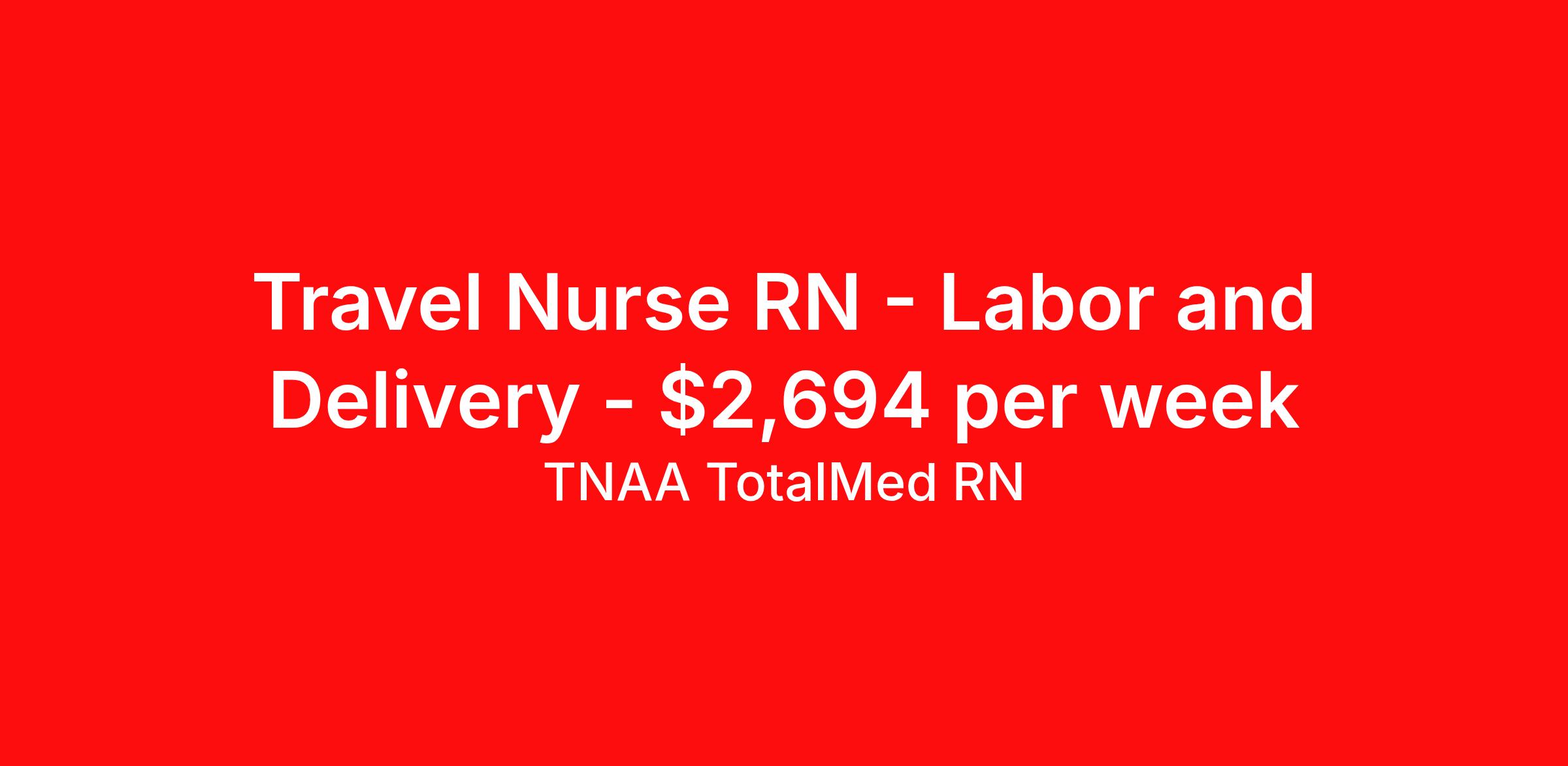 TNAA TotalMed RN is seeking a travel nurse RN Labor and Delivery for a travel nursing job in Silverdale, Washington. Job Description & Requirements Specialty: Labor and Delivery Discipline: RN Start Date: 04/20/2026 Duration: 13 weeks 36 hours per week Shift: 12 hours, nights Employment Type: Travel This position is looking to interview quickly! If this isn’t what you’re looking for please let me know, we have openings nationwide. Or Send referrals! Each one is worth $1,000! If you’d like to reach out to me personally 9 2 0 7 5 0 7 6 2 2 This position is looking to interview quickly! If this isn’t what you’re looking for please let me know, we have openings nationwide. Or Send referrals! Each one is worth $1,000! If you’d like to reach out to me personally 9 2 0 7 5 0 7 6 2 2 About TNAA TotalMed RN TotalMed is a Top Ten, travel nursing and healthcare staffing agency with the mission of igniting purpose in healthcare. The organization staffs nurses, therapists, pharmacists, and other clinicians of all specialties in all 50 states. They offer local and travel jobs and match caregivers with the right organization to assist both facilities and patients. As an organization, they focus on putting highly-skilled staff into facilities to ensure adequate staffing for a better patient experience. TotalMed specializes in recruiting and placing healthcare professionals in travel, PRN, and permanent positions across the country in Nursing and Allied Health. Throughout 2020, the organization filled roles at even the most short-staffed facilities during the most challenging time in healthcare. By matching the right travel healthcare professional with the right organization, TotalMed continues to offer a lifeline to facilities and their patients. Benefits Weekly pay Guaranteed Hours Continuing Education 401k retirement plan Sick pay Wellness and fitness programs Referral bonus Employee assistance programs Medical benefits Dental benefits Vision benefits Benefits start day 1