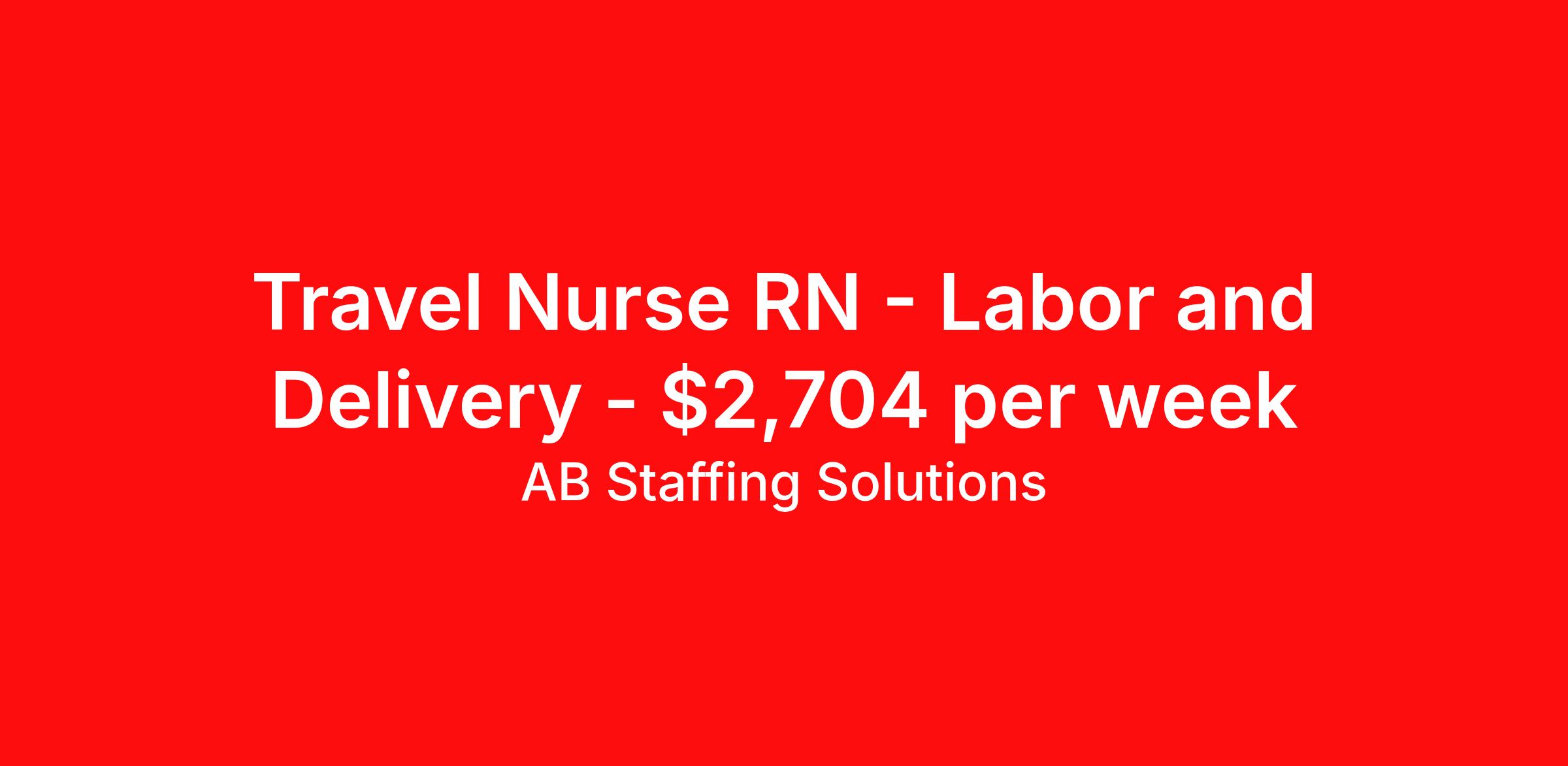 AB Staffing Solutions is seeking a travel nurse RN Labor and Delivery for a travel nursing job in Albuquerque, New Mexico. Job Description & Requirements Specialty: Labor and Delivery Discipline: RN Start Date: 03/24/2026 Duration: 13 weeks 36 hours per week Shift: 12 hours Employment Type: Travel AB Staffing Solutions Job ID 116001. Pay package is based on 12 hour shifts and 36 hours per week (subject to confirmation) with tax-free stipend amount to be determined. About AB Staffing Solutions AB Staffing Solutions is a nationwide leader in travel nurse and healthcare staffing and has been providing strategic healthcare solutions since 2022. For the last 4 years ABSS has been on the prestigious list of Forbes America’s Best Recruiting Firms. We strive to be the leading provider of healthcare personnel at government and commercial medical facilities across the country. Creating a customized experience for each provider and understanding how to create solutions for our clients is at the heart of what we do. Benefits Medical benefits Dental benefits Vision benefits Weekly pay Referral bonus 401k retirement plan