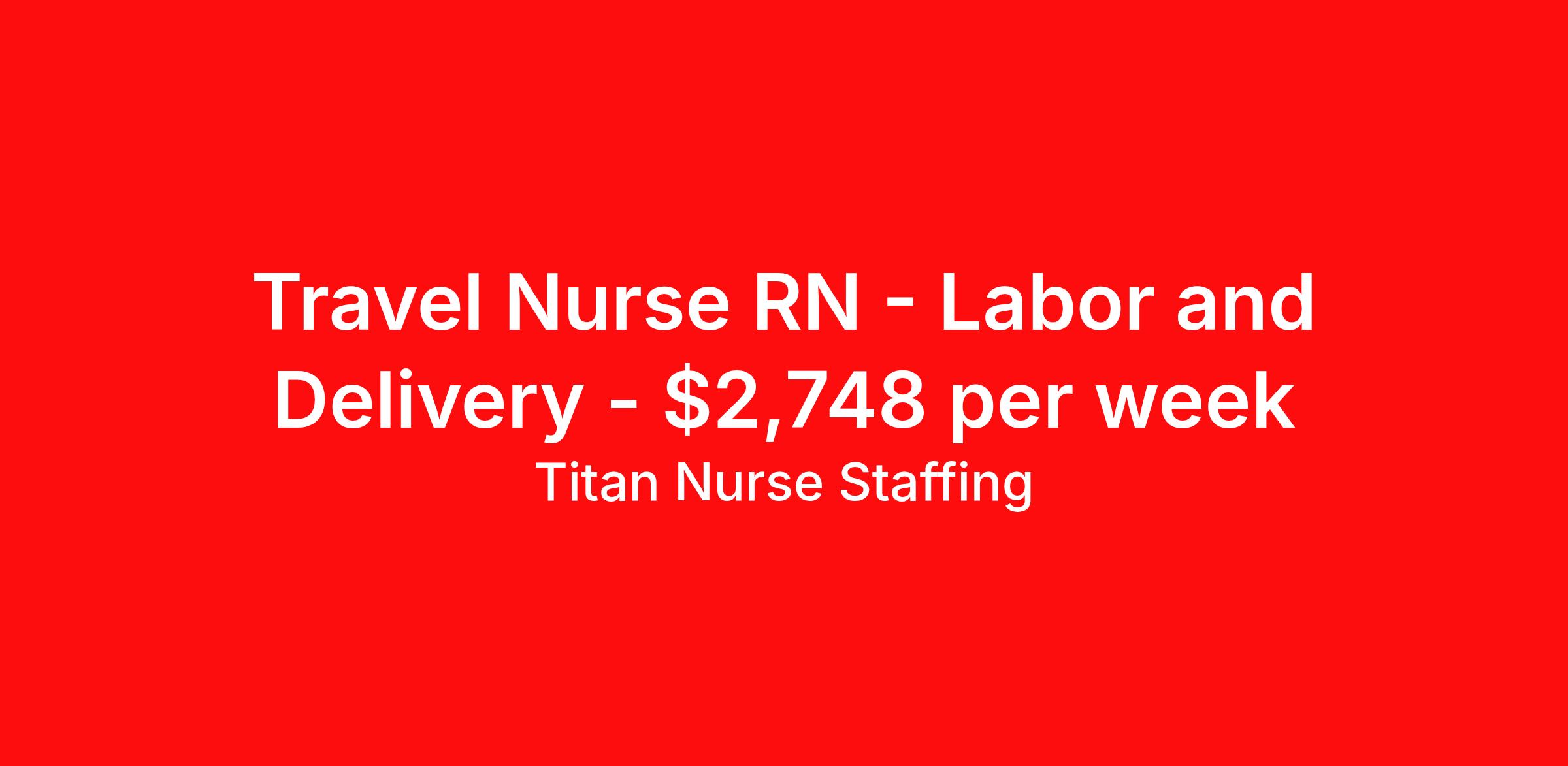 Titan Nurse Staffing is seeking a travel nurse RN Labor and Delivery for a travel nursing job in Pierre, South Dakota. Job Description & Requirements Specialty: Labor and Delivery Discipline: RN Start Date: 04/06/2026 Duration: 13 weeks 36 hours per week Shift: 12 hours, nights Employment Type: Travel Health care professional needed for a L&D position in SD. Must have a minimum of 2 years experience as a L&D RN. We offer our clients the best in traveling medical professionals. The only way we can attract and maintain a good relationship with those professionals is to keep their best interests in mind. After all, our success relies on your success. That’s why we always put your best interests in mind — from superior placements to finding great living accommodations and negotiating a fair price to providing the tools you need for success. Titan Medical is one of the top medical staffing agencies because we provide superior support to our travelers every step of the way. About Titan Nurse Staffing We Take Care of You. While the availability of medical technicians and professionals becomes increasingly limited, there seems to be no shortage of staffing firms. That’s why Titan Medical works hard to distinguish itself through our responsiveness, our candidates and our attentiveness to your individual needs. When we say, “We take care of you.” We mean it – both to the medical professionals we represent and the healthcare organizations that rely on us for quality candidates. Founded by experienced medical professional recruiters and healthcare human resource professionals, Titan Medical was created as an alternative to other staffing resources. We found that by focusing on the needs of the individuals we served, we were able to attract higher quality candidates and clients in need of their services. It’s a risk that paid off, making Titan Medical one of the leading medical professional staffing firms in the country. Our candidates include the very best in the fields of radiation oncology, rehabilitation, respiratory care, radiology services, nursing and medical laboratory have to offer. Our clients represent the broad diversity of the healthcare industry today – from leading national and regional healthcare centers to traditional hospitals, specialty care clinics and other centers of care.