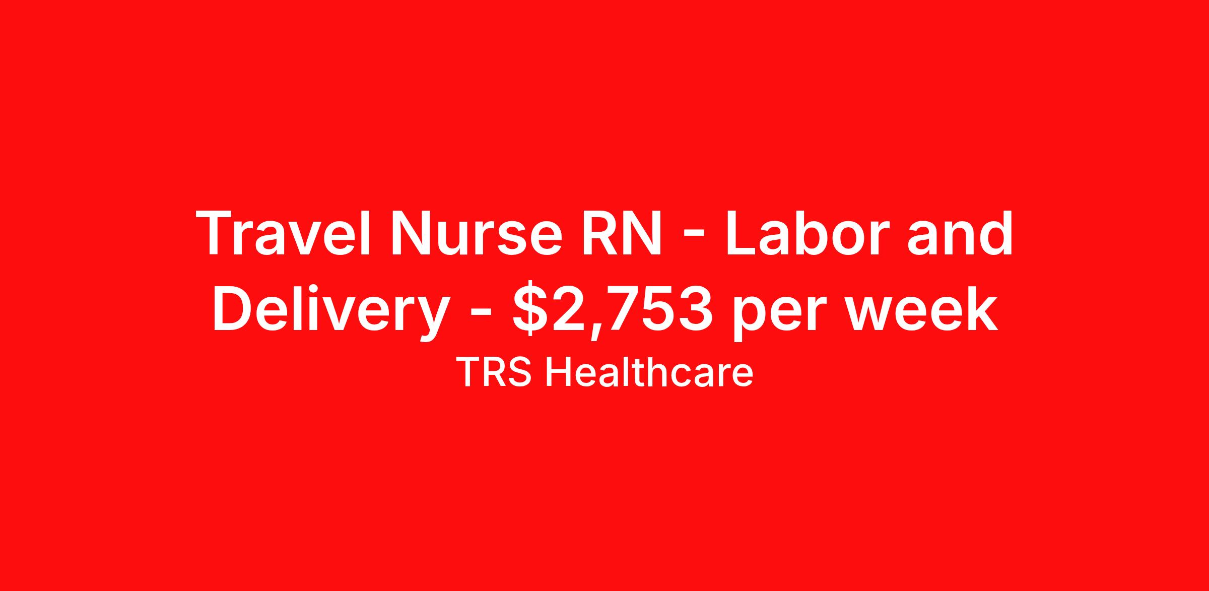 TRS Healthcare is seeking a travel nurse RN Labor and Delivery for a travel nursing job in Ashland, Wisconsin. Job Description & Requirements Specialty: Labor and Delivery Discipline: RN Start Date: 05/04/2026 Duration: 16 weeks 36 hours per week Shift: 12 hours, nights Employment Type: Travel TRS Healthcare Job ID 1447699. Pay package is based on 12 hour shifts and 36 hours per week (subject to confirmation) with tax-free stipend amount to be determined. Posted job title: OB - Labor & Delivery Registered Nurse About TRS Healthcare TRS Healthcare has been a leader in the healthcare staffing industry for over 25 years, providing exceptional career opportunities for travel nurses and allied health professionals. An RN-founded, woman-owned company, TRS Healthcare has team members in all 50 states. We recruit and support registered nurses, licensed practical nurses, surgical technicians, respiratory therapists, imaging technologists, laboratory specialists, and other experienced nursing and allied healthcare professionals. We staff hundreds of healthcare facilities across the U.S. in urban, rural, and underserved areas, including multi-state hospital systems, critical access hospitals, rural community hospitals, long-term care facilities, trauma centers, standalone clinics, and more. Learn more about TRS Healthcare at trshealthcare.com .