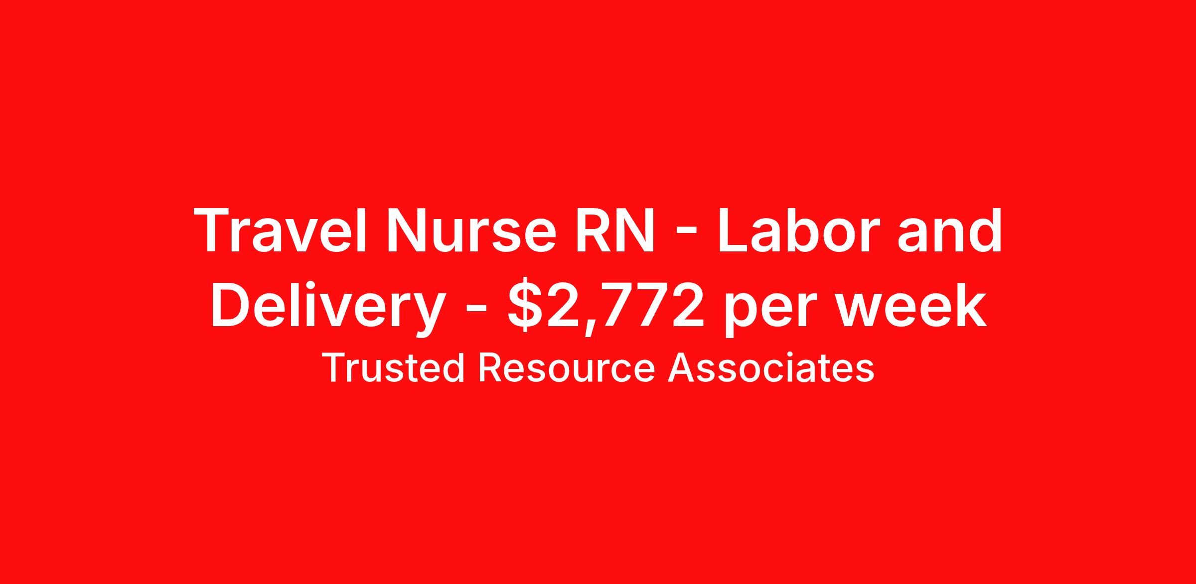 Trusted Resource Associates (TRA) is seeking a travel nurse RN Labor and Delivery for a travel nursing job in Detroit, Michigan. Job Description & Requirements Specialty: Labor and Delivery Discipline: RN Start Date: 04/01/2026 Duration: 13 weeks 36 hours per week Shift: 12 hours, nights Employment Type: Travel TRA RN Labor and Delivery TRA is Tenet's in-house nationwide contingent pool for Nursing and Allied travel and local contracts. Receive a greater level of Contract security compared to with an outside agency. BENEFITS - Guaranteed hours for Travel Contracts - Preferred Booking Agreement for Local Contracts - Weekly Pay - Holiday Pay - Contract Security compared to a contract with an outside agency Minimum education Graduate of an accredited School of nursing Minimum Experience Must have 2 years of Acute Care nursing experience with a minimum one year current in L and D. Required Certification/Licensure - Must be currently licensed, certified or registered to practice profession as required by law, regulation in state of practice or policy. Must meet all certification requirements for each nursing specialty supported - American Heart Association - CPR-Basic Life Support - Other credentialing items, such as a skills checklist and health related documents, which will be specified by your Recruiter. Our Hire Process - We do qualify our clinicians to meet or exceed the minimum requirements of a travel or local assignment. If you are qualified, we may direct-hire you, reducing the time we can get you to work! When you reach out to a TRA Recruiter for more details, ensure your Vivian profile includes your most updated resume! Trusted Resource Associates (TRA) Job ID 500323. Pay package is based on 12 hour shifts and 36 hours per week (subject to confirmation) with tax-free stipend amount to be determined. Benefits 401k retirement plan Weekly pay Holiday Pay Referral bonus