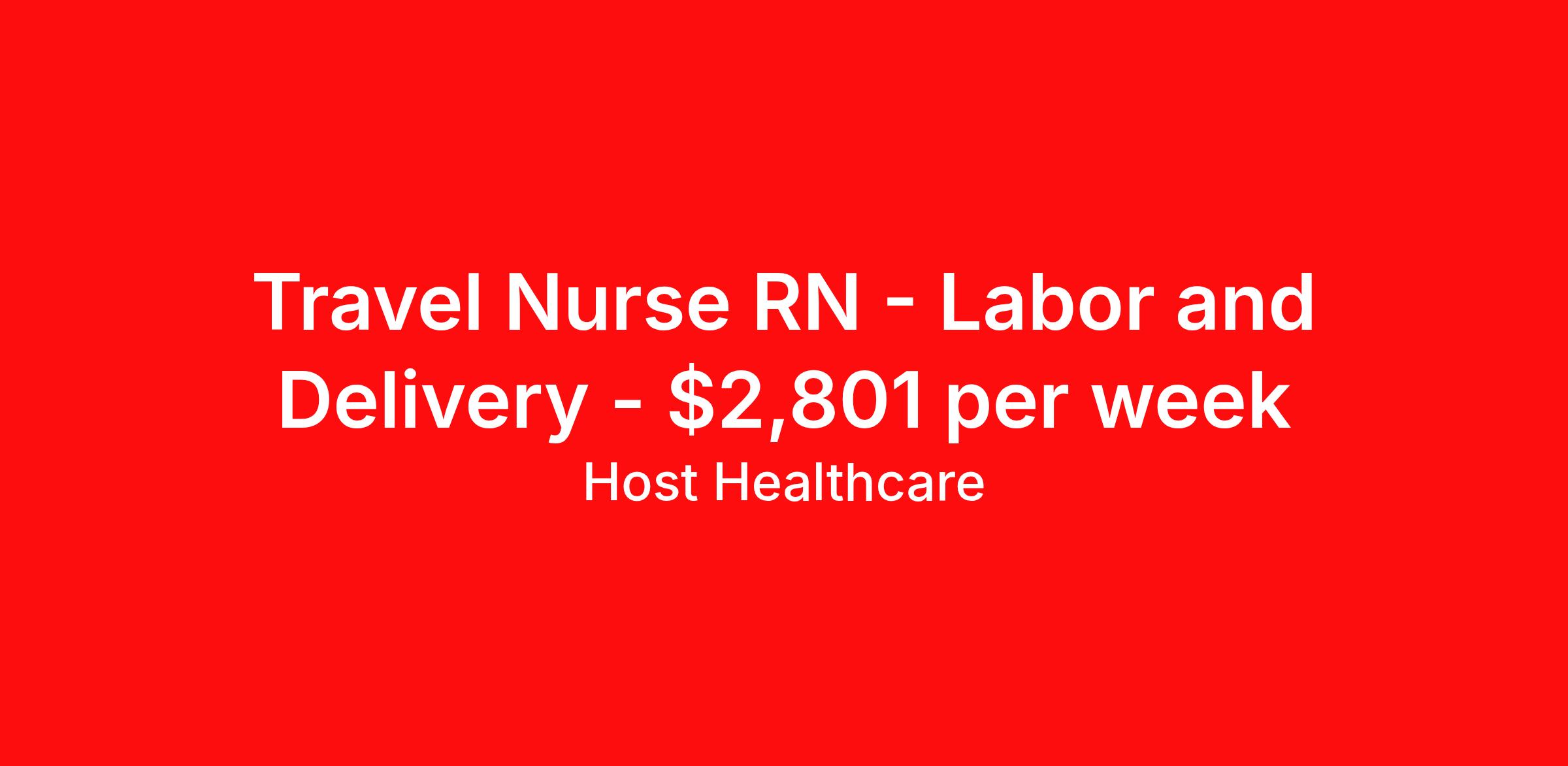 Host Healthcare is seeking a travel nurse RN Labor and Delivery for a travel nursing job in Springfield, Massachusetts. Job Description & Requirements Specialty: Labor and Delivery Discipline: RN Start Date: 04/06/2026 Duration: 13 weeks 36 hours per week Shift: 12 hours, nights Employment Type: Travel Host Healthcare Job ID a1fVX000002oE0DYAU. Pay package is based on 12 hour shifts and 36 hours per week (subject to confirmation) with tax-free stipend amount to be determined. Posted job title: RN - Labor and Delivery About Host Healthcare At Host Healthcare, we provide a truly comfortable experience as you explore your travel nursing, therapy, or allied career. We make your travel healthcare journey easy by taking care of all the details, so you don’t have to. We are on a mission to help others live better and we do this by helping the healers of the world be as comfortable as possible. With access to tens of thousands of travel nursing, therapy, and allied jobs in all 50 states, our responsive and friendly recruiters find your dream position based on what’s important to you. During your assignment, get access to premium benefits, including Day 1 medical that continues up to 30 days between assignments, 401K matching, travel reimbursements, dedicated housing support, and more. We also offer 24/7 support from our team and access to our on-staff clinicians so you can feel comfortable and confident throughout your entire assignment. Travel comfortably with Host Healthcare. Benefits Referral bonus School loan reimbursement Vision benefits Wellness and fitness programs Company provided housing options License and certification reimbursement Life insurance Medical benefits Mileage reimbursement Pet insurance Discount program Employee assistance programs Guaranteed Hours Health savings account Holiday Pay 401k retirement plan Continuing Education Dental benefits