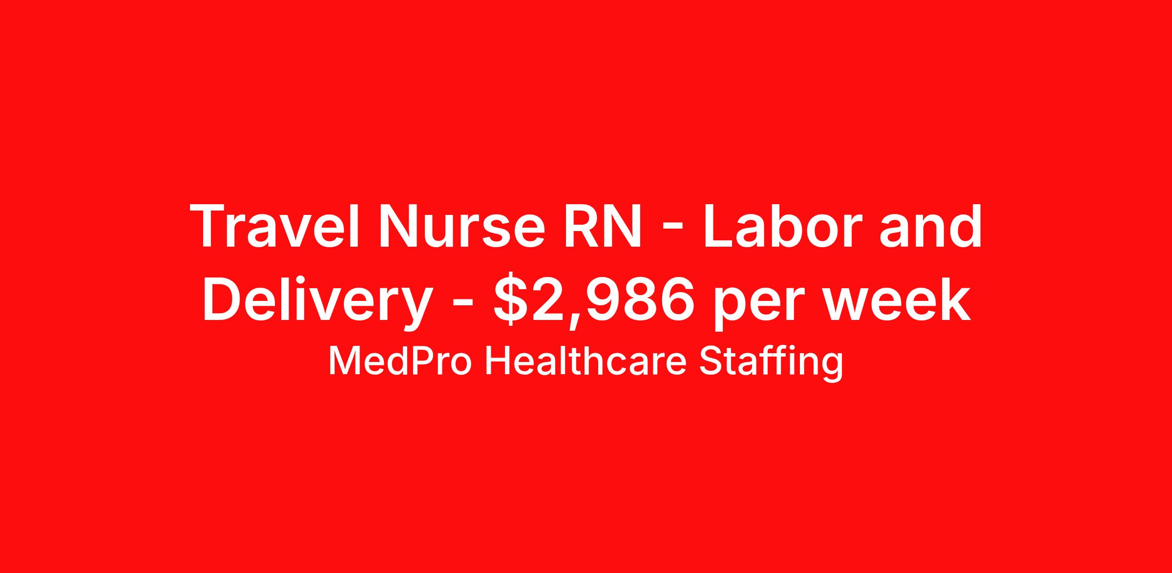 Travel Nurse RN - Labor and Delivery - $2,986 per week