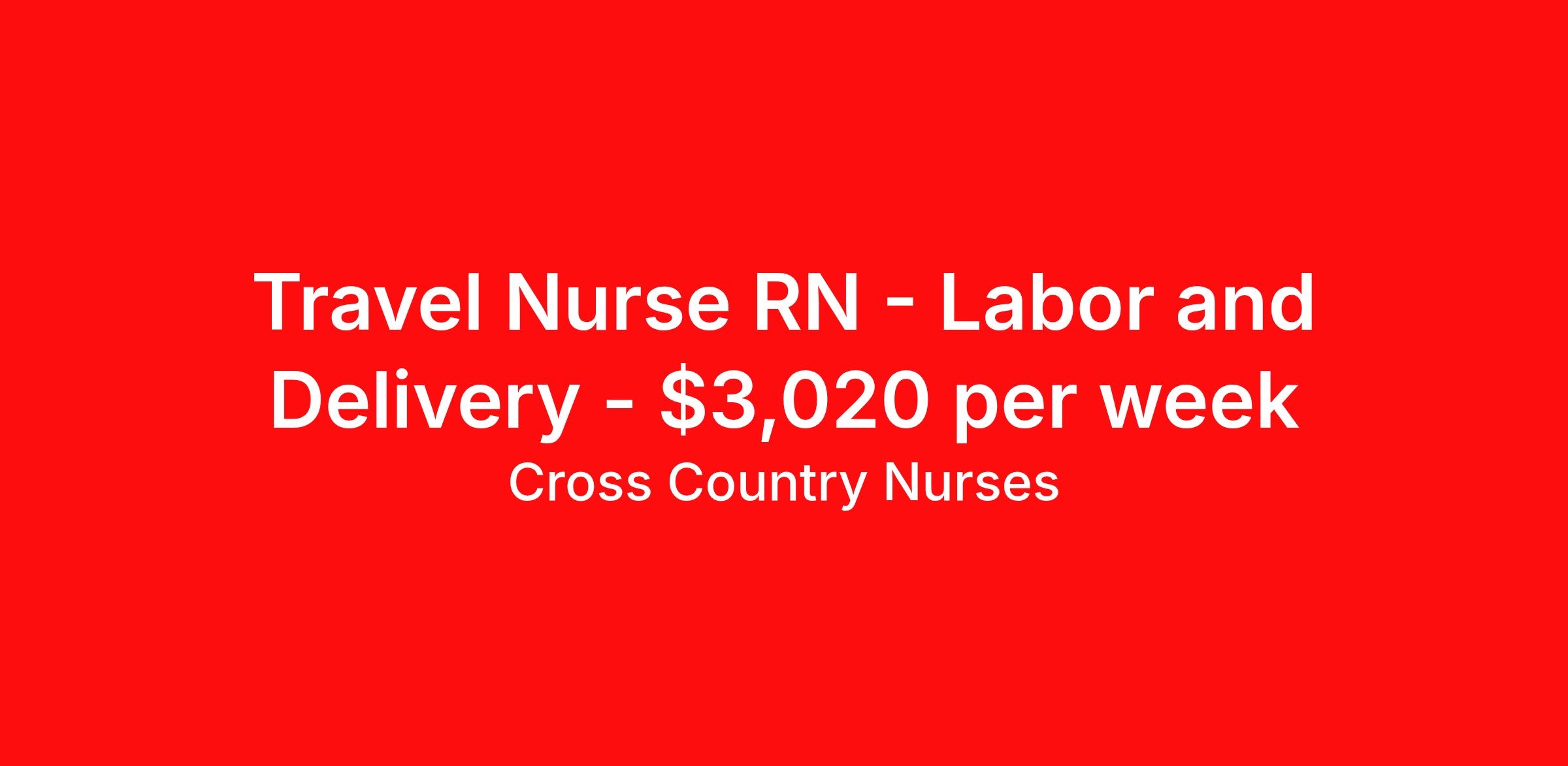 Travel Nurse RN - Labor and Delivery - $3,020 per week