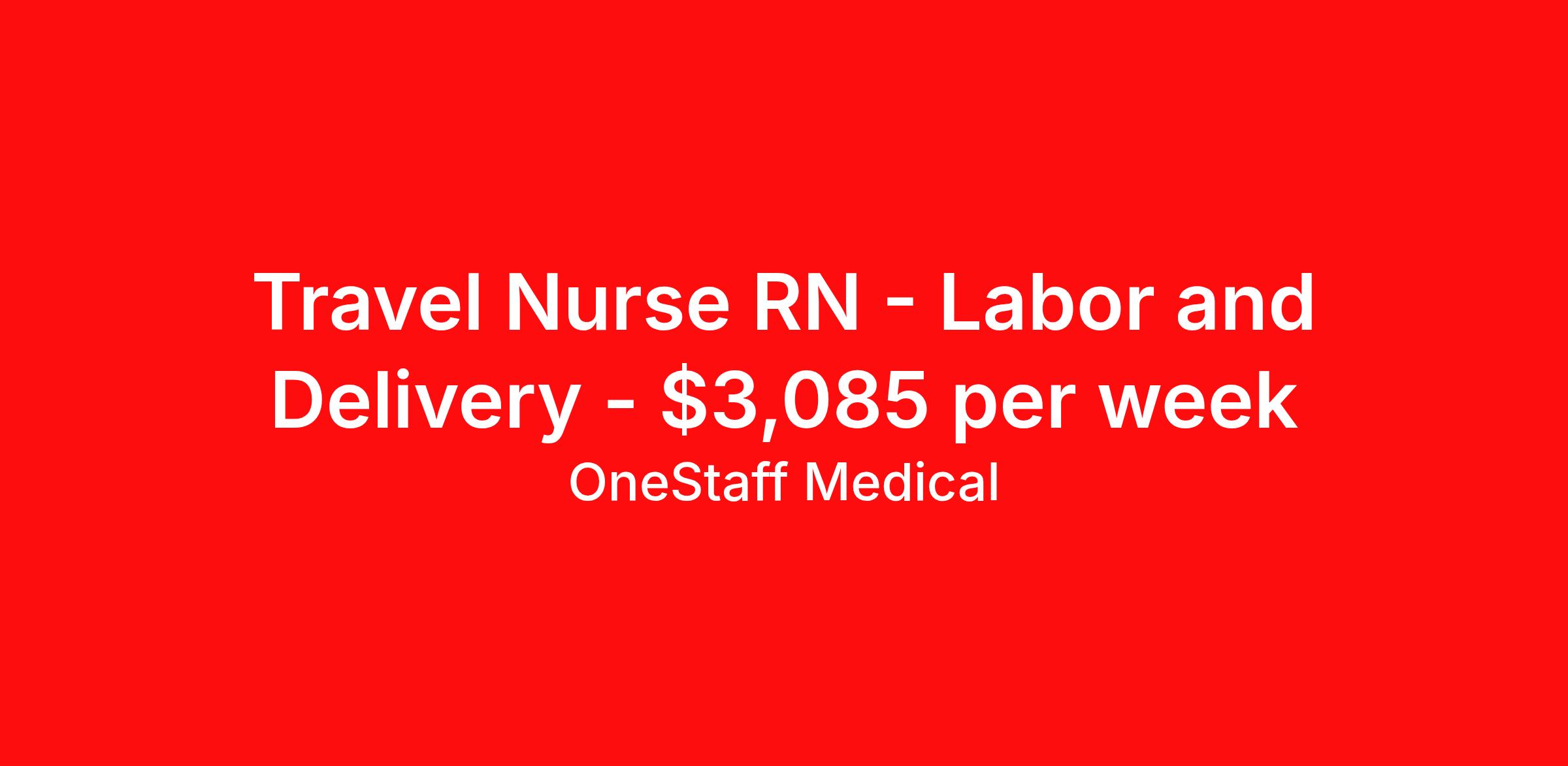 OneStaff Medical is seeking a travel nurse RN Labor and Delivery for a travel nursing job in Lawrence, Massachusetts. Job Description & Requirements Specialty: Labor and Delivery Discipline: RN Start Date: 04/14/2026 Duration: 13 weeks 36 hours per week Shift: 12 hours, rotating Employment Type: Travel Facility: Lawrence Hospital – Merrimack Health Start / Orientation: 4/14 (must be able to start on this date) Shift: Day / Evening Flex Contract: 13 weeks Requirements Minimum 3 years Labor & Delivery experience Must have active Massachusetts RN license (perm license required) Experience in L&D required About OneStaff Medical You deserve a partner that is working for you. Be bold and let us do just that. We’ll take care of you while you are away from your own “home base” in every way we can, and ideally do more than you expect. Your team at OneStaff is dedicated to finding the perfect assignments (for you), negotiate the best rates and handles any issues that may arise while you are on assignment. We take great pride in building relationships with our traveling professionals and we enjoy hearing about your experiences. Whatever the need, we are here to help along the journey. We understand you are the heart and soul of what we are. Whether it is housing, payroll, travel, benefits, or just a friendly voice to talk to, we are there every step of the way. The company you choose is the most important decision you will make in your traveling career. We get that, so we’re committed to you 24 hours-a-day, 7 days-a-week. We’re your “one” solution in travel assignments and here to assist whether helping with accelerating your trajectory towards your career goals or meeting your travel requirements. Benefits Weekly pay Holiday Pay Guaranteed Hours 401k retirement plan Pet insurance Company provided housing options Sick pay Wellness and fitness programs Referral bonus Medical benefits Dental benefits Vision benefits