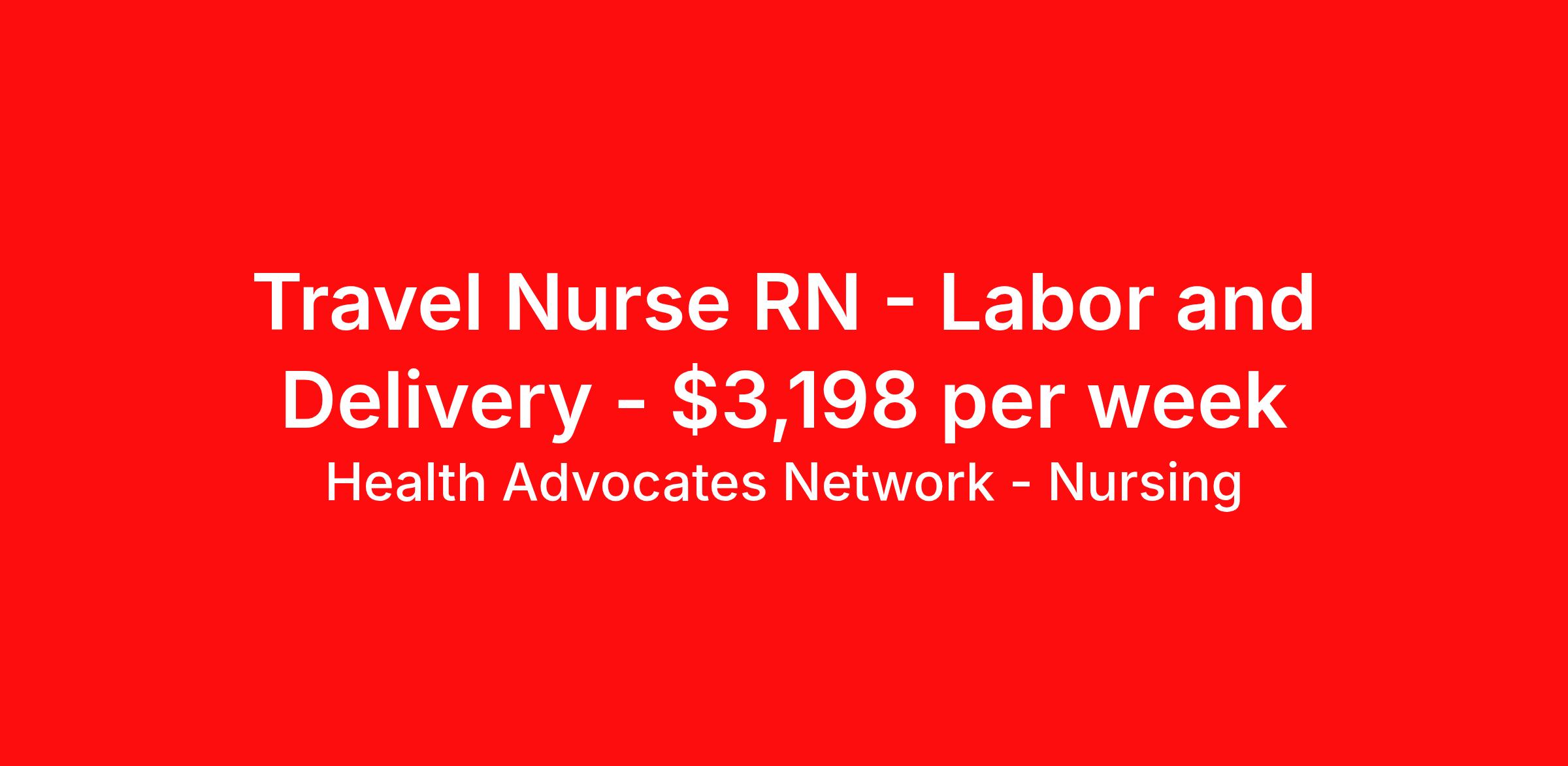 Health Advocates Network - Nursing is seeking a travel nurse RN Labor and Delivery for a travel nursing job in Methuen, Massachusetts. Job Description & Requirements Specialty: Labor and Delivery Discipline: RN Start Date: 04/14/2026 Duration: 12 weeks 36 hours per week Shift: 12 hours, nights Employment Type: Travel HANStaff Job ID 524439. Pay package is based on 12 hour shifts and 36 hours per week (subject to confirmation) with tax-free stipend amount to be determined. Posted job title: RN - L & D About Health Advocates Network - Nursing Health Advocates Network was founded on the basis of a shared aspiration, to improve the way healthcare staffing is done. We are a company established and led by nurses. Our flexible approach enables us to develop solutions customized to your specific needs. From short- and long-term travel contracts to local and per diem assignments and more, we are here to get you to your next adventure! By solving challenges, providing the best placements, and advocating for you, we stand to help you thrive and pave the path forward in your career. Click on the videos below to learn more about our values!
