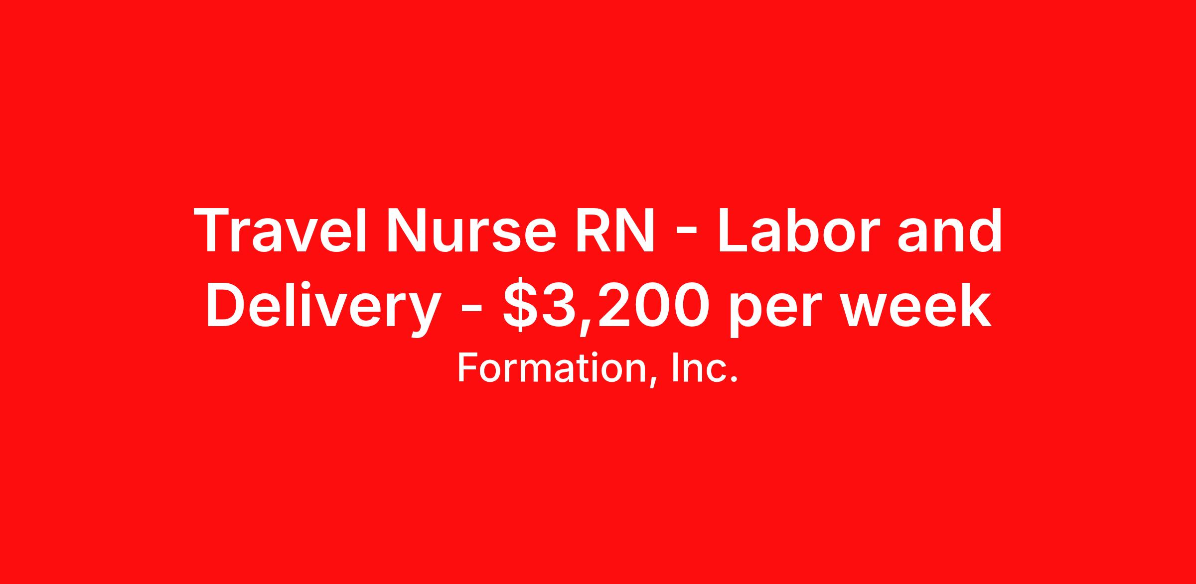 Formation, Inc. is seeking a travel nurse RN Labor and Delivery for a travel nursing job in Redwood City, California. Job Description & Requirements Specialty: Labor and Delivery Discipline: RN Start Date: 04/13/2026 Duration: 13 weeks 36 hours per week Shift: 12 hours, nights Employment Type: Travel Job & Shift Unit Labor & Delivery Unit Type L&D (Labor and Delivery) Division Nursing Care Setting Acute Shift Length 12 Guaranteed Hours 36 hours per week Years of Experience 2 Years License to Submit Yes BSN Required No Orientation Hours 12 Hours Required Certifications ACLS, Advanced Fetal Monitoring, BLS Certification, NRP Shift Notes 7p-7a, EOW first to float Additional Details Trauma Level Charting System Cerner Unit Notes - Ratios: Per ACOG and Cali; 1:3 or 1:4 couplets - EMR: Cerner power chart maternity and Cerner fetal links for FHM - Charge Nurse: Yeswill triage patients - Nurse Aides: OB techs will function as aides when no cases - Weekend Requirement: Every other weekend (Fri/Sat noc, Sat/Sun days) - Holidays Rotate w/ staff (one of every 3 majors) - Scrub Color: Ceil blue provided by hospital - Hospitalist or Intensivist in house: Anesthesia 24/7 (can be 20 min away from hospital but usually are in house), if in active labor are in house; 90% of population elects for epidural; after hours and weekends have private OB/GYN physicians but during week and day they are at their private practices - IV Team: No - RT 24/7: Yes - Pharmacy 24/7: 7-2230 then satellite - Shifts: 7a, 7p start times - Floating: To PP in rotation with perm staff - Floor specific orientation: 3 shifts on unit, 2 L&D, 1 MB - Common diagnosis / Types of patients: Level 2 NICU on site that is staffed by Stanford nurse; 32 weeks and above; rarely will see some GYN clean patient overflow; Stanford NICU nurses attend each delivery - Additional Notes: LDRP rooms are new, PP rooms are older; have lactation nurses on staff during day and they will write the lactation care plan on white board; not a locked unit but do use hugs and kisses infant security system; patient population is a higher socioeconomic status w/ median maternal age of 37; higher mandarin speaking volume and use translation services via vocera phones; everyone helps w/ triage and NST - Additional Questions: call is not required, but it is optionalat times, if low census will be placed on call for 4 hour increments during shift; if placed on call need to be within 20 minutes of hospitalthere is a sleep room in hospital which can be utilized About Formation, Inc. Formation Healthcare is a leading Travel Nursing agency based in Los Angeles, CA. Travel nurses need knowledgeable, motivated recruiters they can trust, and the highest rates at the top facilities nationwide. Nurses, we hear you! We’re here to help you focus on your patients worry-free, we’ll focus on the rest. Don’t settle for less than you deserve, call Formation Healthcare for your next travel assignment and see the difference, today! Benefits Weekly pay License and certification reimbursement Mileage reimbursement Sick pay Guaranteed Hours