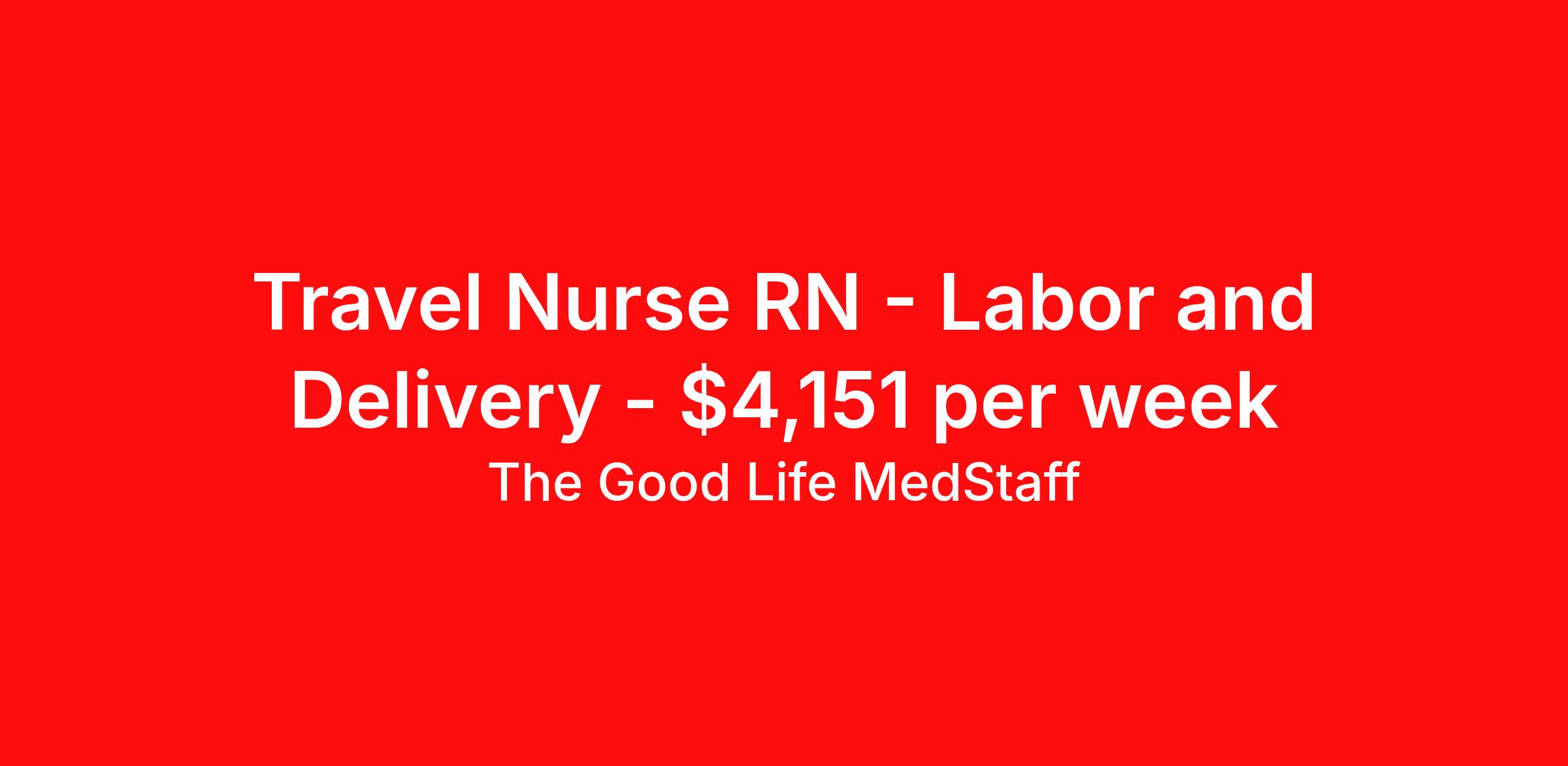 The Good Life MedStaff is seeking a travel nurse RN Labor and Delivery for a travel nursing job in Kotzebue, Alaska. Job Description & Requirements Specialty: Labor and Delivery Discipline: RN Start Date: ASAP Duration: 13 weeks 36 hours per week Shift: 12 hours, days Employment Type: Travel The Good Life MedStaff Job ID 35966600. Pay package is based on 12 hour shifts and 36.0 hours per week (subject to confirmation) with tax-free stipend amount to be determined. Posted job title: RN:Labor & Delivery (L&D/OB),07:00:00-19:00:00 About The Good Life MedStaff We are a Travel Nursing Agency, connecting compassionate caregivers, who love adventure, with amazing opportunities. We want to bring you to The Good Life! Connecting, Caring, and Competing for the best opportunities to help you reach your goals! Benefits Medical benefits Dental benefits Vision benefits 401k retirement plan Referral bonus