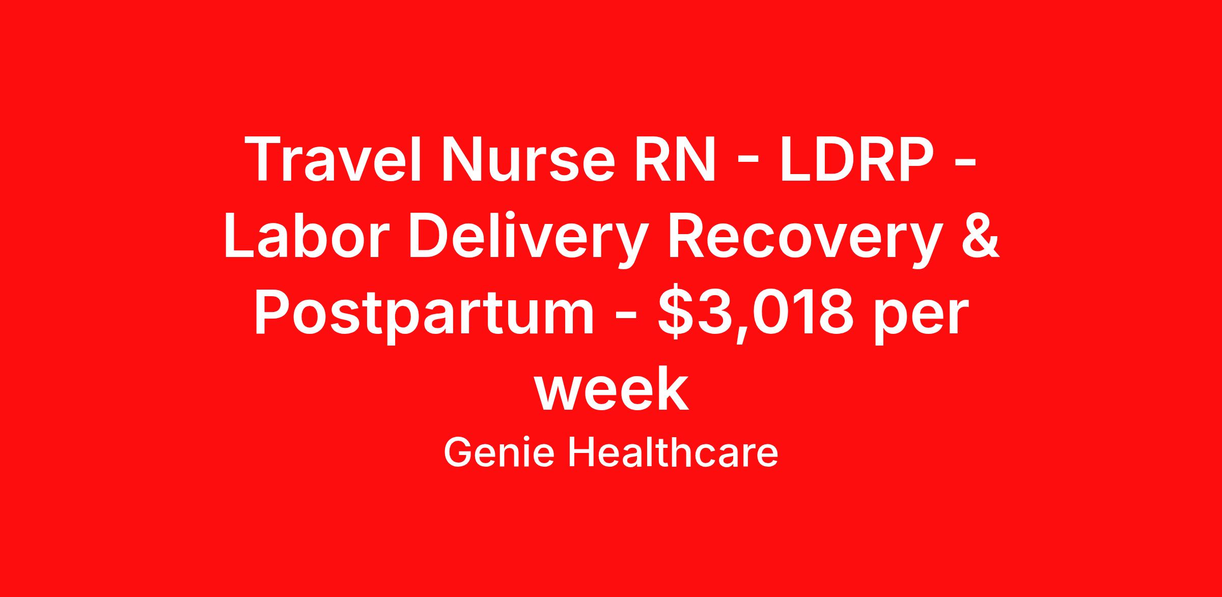 Travel Nurse RN - LDRP - Labor Delivery Recovery & Postpartum - $3,018 per week