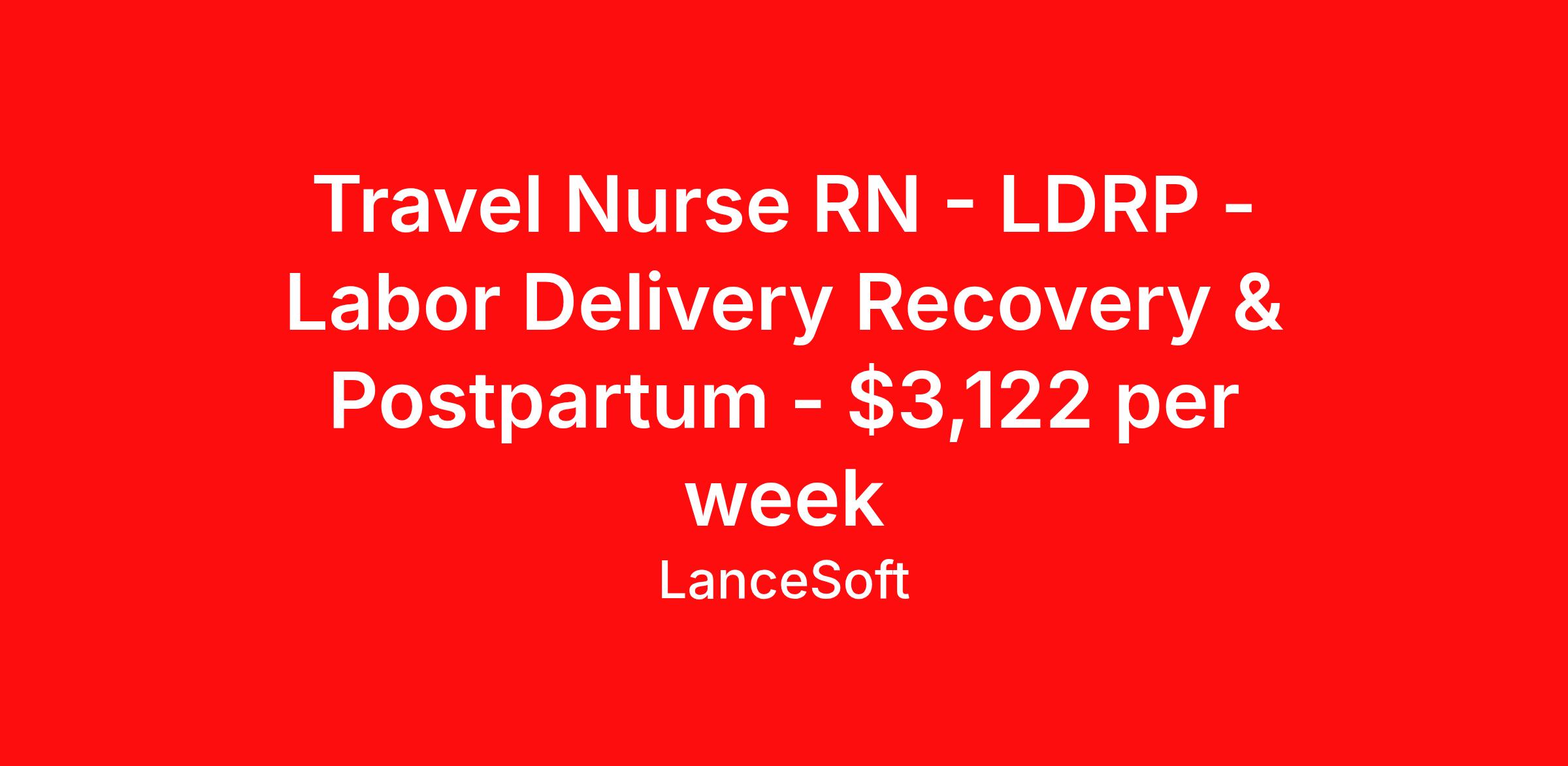 Travel Nurse RN - LDRP - Labor Delivery Recovery & Postpartum - $3,122 per week