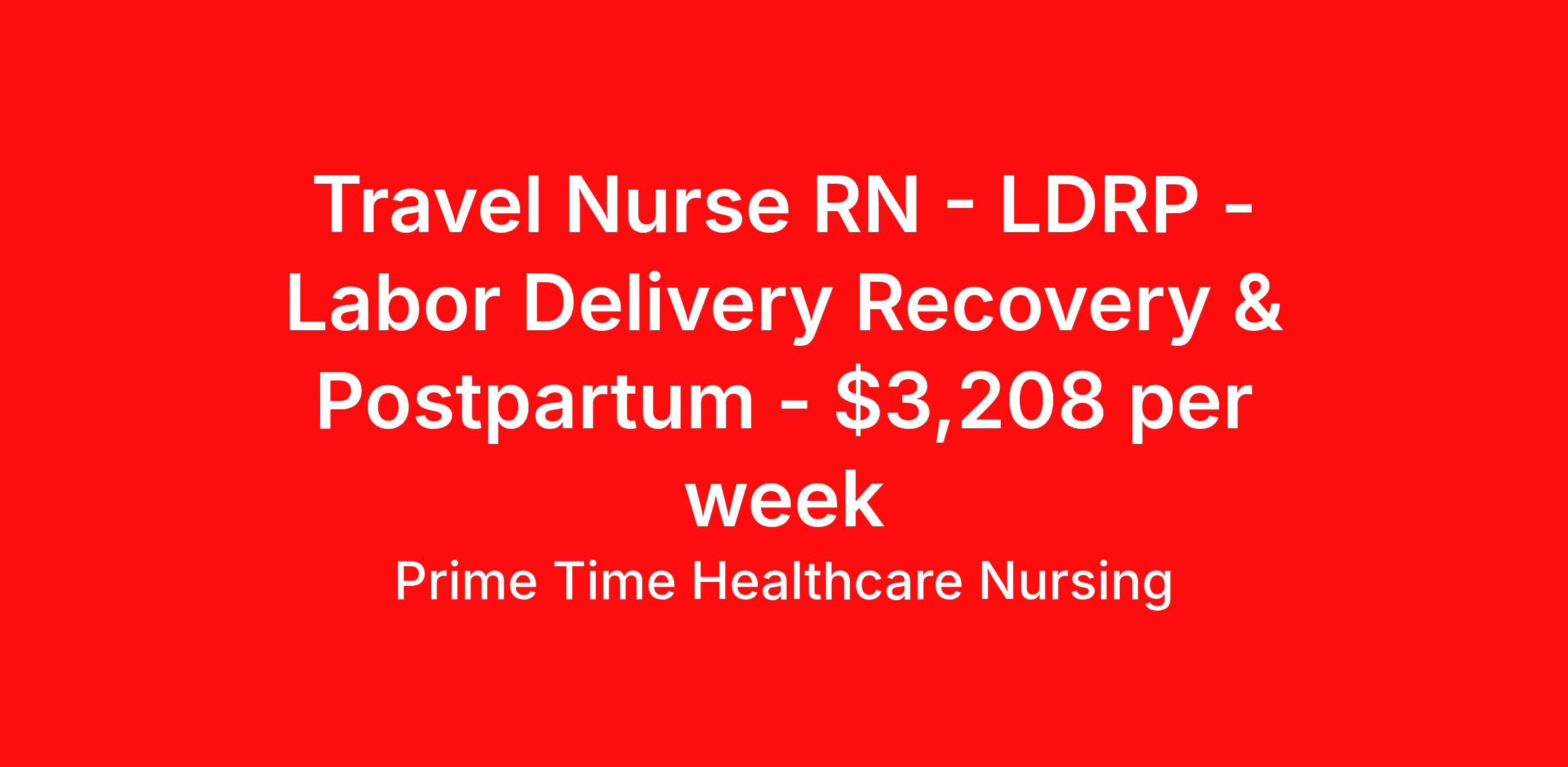 Prime Time Healthcare Nursing is seeking a travel nurse RN LDRP - Labor Delivery Recovery & Postpartum for a travel nursing job in Marshfield, Maine. Job Description & Requirements Specialty: LDRP - Labor Delivery Recovery & Postpartum Discipline: RN Start Date: 03/30/2026 Duration: 13 weeks 36 hours per week Shift: 12 hours, days, nights Employment Type: Travel BLS, ACLS, PALS, NRP Traveler must be strong in labor Facility had 95 deliveries last year. Sometimes will have 3 -4 deliveries in a week and sometimes will not see a delivery in a week. Facility does not do high risk Will float in down time, however, will not take patients. Just a helping hand About Prime Time Healthcare Nursing Prime Time Healthcare is a leading provider of traveling healthcare professionals nationwide. Our agency specializes in the placement of RNs, LPNs, CNAs, and Allied Health professionals. Join the fun and experience why healthcare professionals and client facilities are joining the Prime Time TEAM. Benefits 401k retirement plan Health savings account Referral bonus Medical benefits Dental benefits Vision benefits