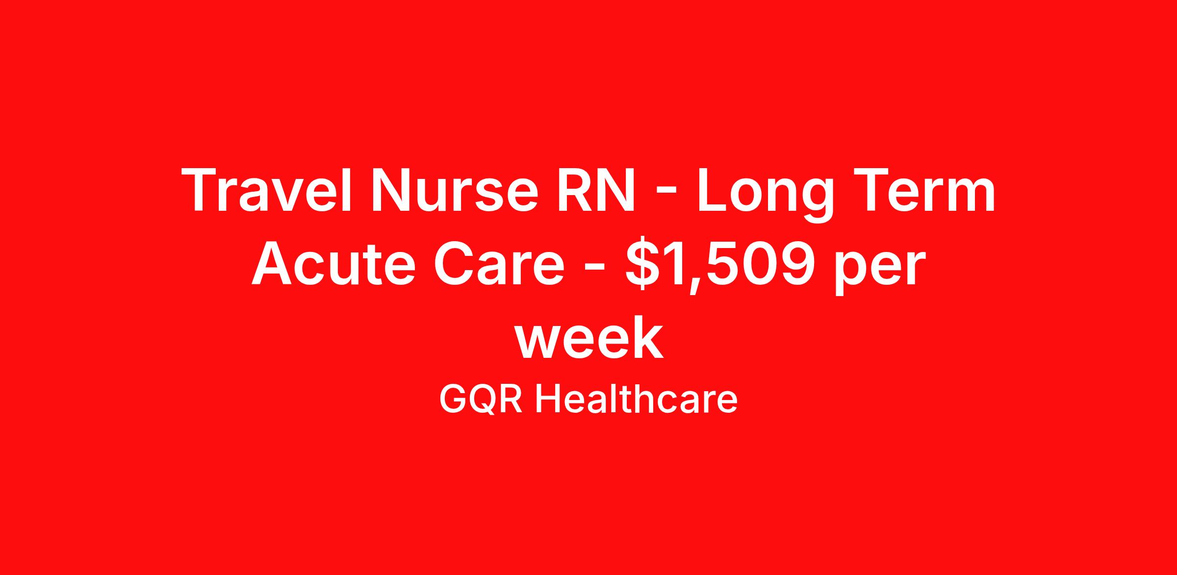 Travel Nurse RN - Long Term Acute Care - $1,509 per week