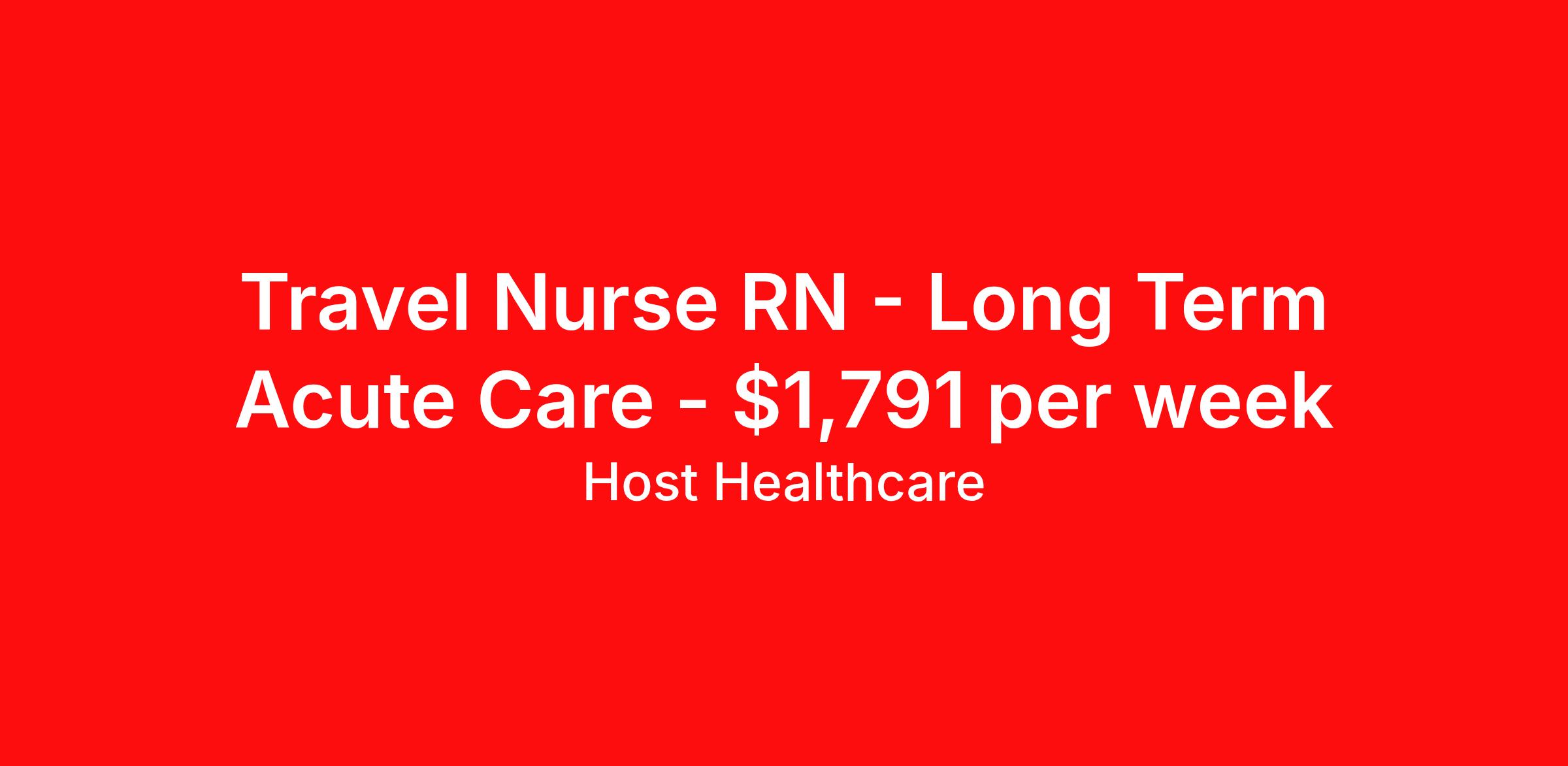 Host Healthcare is seeking a travel nurse RN Long Term Acute Care for a travel nursing job in Bowling Green, Kentucky. Job Description & Requirements Specialty: Long Term Acute Care Discipline: RN Duration: 13 weeks 36 hours per week Shift: 12 hours, days Employment Type: Travel Host Healthcare Job ID a1fVX000002tf9RYAQ. Pay package is based on 12 hour shifts and 36 hours per week (subject to confirmation) with tax-free stipend amount to be determined. Posted job title: RN - Long Term Acute Care About Host Healthcare At Host Healthcare, we provide a truly comfortable experience as you explore your travel nursing, therapy, or allied career. We make your travel healthcare journey easy by taking care of all the details, so you don’t have to. We are on a mission to help others live better and we do this by helping the healers of the world be as comfortable as possible. With access to tens of thousands of travel nursing, therapy, and allied jobs in all 50 states, our responsive and friendly recruiters find your dream position based on what’s important to you. During your assignment, get access to premium benefits, including Day 1 medical that continues up to 30 days between assignments, 401K matching, travel reimbursements, dedicated housing support, and more. We also offer 24/7 support from our team and access to our on-staff clinicians so you can feel comfortable and confident throughout your entire assignment. Travel comfortably with Host Healthcare. Benefits Referral bonus School loan reimbursement Vision benefits Wellness and fitness programs Company provided housing options License and certification reimbursement Life insurance Medical benefits Mileage reimbursement Pet insurance Discount program Employee assistance programs Guaranteed Hours Health savings account Holiday Pay 401k retirement plan Continuing Education Dental benefits