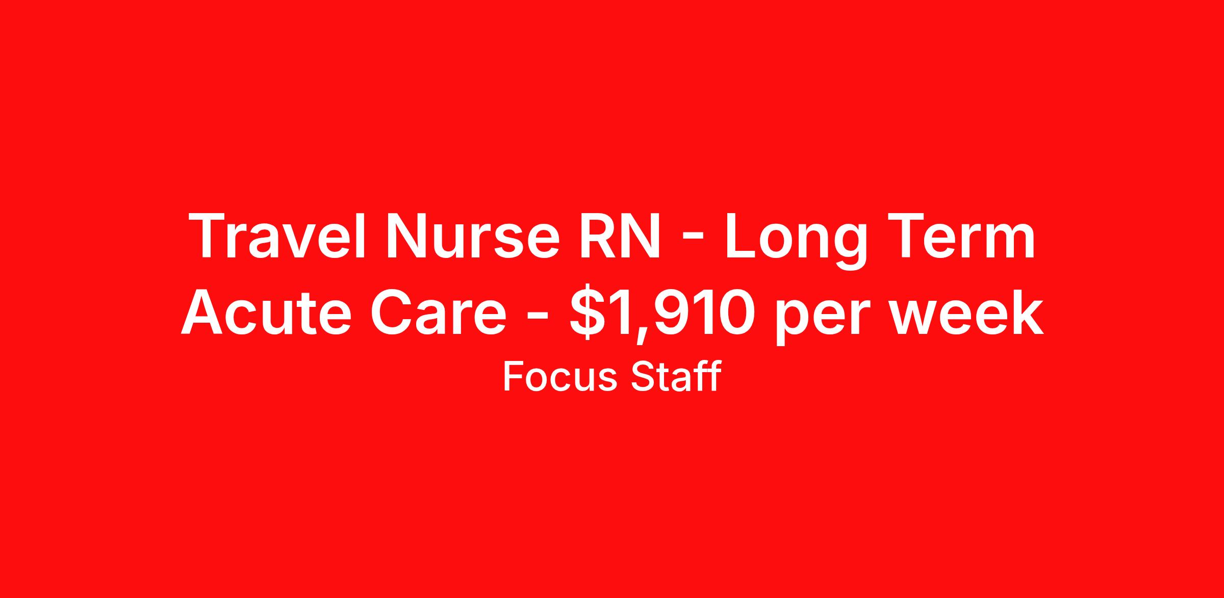 Travel Nurse RN - Long Term Acute Care - $1,910 per week