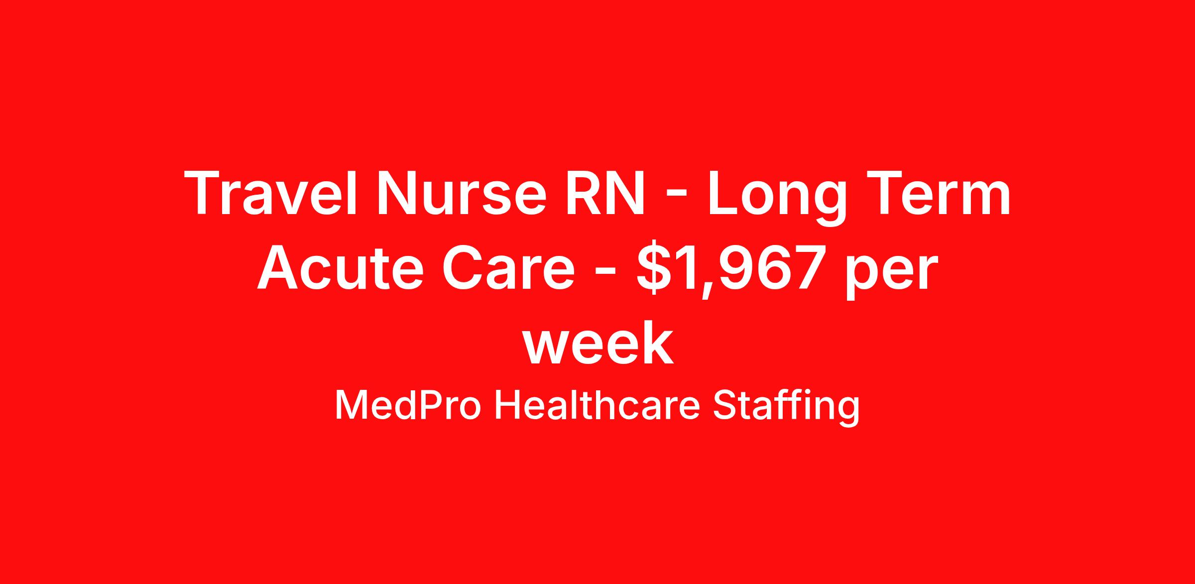 MedPro Healthcare Staffing is seeking a travel nurse RN Long Term Acute Care for a travel nursing job in Hummelstown, Pennsylvania. Job Description & Requirements Specialty: Long Term Acute Care Discipline: RN Start Date: 04/06/2026 Duration: 13 weeks 36 hours per week Shift: 12 hours, nights Employment Type: Travel MedPro Healthcare Staffing , a Joint Commission-certified staffing agency, is seeking a quality Long Term Acute Care registered nurse for a travel assignment with one of our top healthcare clients. Requirements Active RN License Degree from accredited nursing program BLS & ACLS Certifications Eighteen months of recent experience in an Long Term Acute Care setting Experience with Vents, Trachs, Drips, EG Tubes and able to read Tele-strips Other requirements to be determined by our client facility Benefits Weekly pay and direct deposit Full coverage of all credentialing fees Private housing or housing allowance Group Health insurance for you and your family Company-paid life and disability insurance Travel reimbursement 401(k) matching Unlimited Referral Bonuses up to $1,000 Duties Responsibilities As part of the LTAC unit, Long Term Acute Care Nurses (RN) are responsible for caring for patients who require extended medical care. Provide care for 5-6 patients. Adjust and perform in fast paced environment Keep up with many admissions and discharges Be able to monitor and administer medications (orally, subcutaneously, and through an IV) Educate patients and family on surgical processes and how to manage their illness/injury Monitor and adjust specialized equipment used on patients, and record and interpret electronic displays Interpret and understand telemetry readings, notifying appropriate medical team members of any irregularities Perform the duties required of a registered nurse at all times Care for patients with pulmonary HTN, respiratory failure, COPD, CHF, and A-Fib Use computer equipment to monitor cardiac and other vital information Start IV’s, draw blood, see the patient from start to finish About Agency MedPro Healthcare Staffing is a Joint Commission certified provider of contract staffing services. Since 1983, we have placed nursing and allied travelers in top healthcare facilities nationwide. Join us today for your very own MedPro Experience®. If qualified and interested, please call for immediate consideration. MedPro Staffing is an Equal Opportunity Employer. All applicants will be considered for employment without attention to race, color, religion, national origin, age, sex, disability, marital status or veteran status. Key Words: Long Term Acute Care Nurse, RN-LTAC, Long Term Acute Care Nursing positions, Travel Nurse, Contract Nurse, Agency Nurse, LTAC, LTAC Contracts, Registered Nurse, LTAC Nurse, RN, Travel Nursing *Weekly payment estimates are intended for informational purposes only and include a gross estimate of hourly wages and reimbursements for meal, incidental, and housing expenses. Your recruiter will confirm your eligibility and provide additional details. MedPro Job ID a0Fcx00000HtBInEAN. Pay package is based on 12 hour shifts and 36 hours per week (subject to confirmation) with tax-free stipend amount to be determined. Posted job title: Long Term Acute Care Registered Nurse Nursing: LTAC - Long Term Acute Care. About MedPro Healthcare Staffing At MedPro Healthcare Staffing , we believe no one cares more for caregivers than we do. Our mission is simple: you focus on your patients, and we’ll take care of the rest. As a Joint Commission-certified leader in temporary and contract healthcare staffing since 1983, MedPro has proudly connected nursing and allied travelers with top healthcare facilities across the nation. With thousands of job opportunities available nationwide, we make it easy to find assignments that align with your goals and lifestyle. Our on-staff clinical support team—alongside a compassionate group of experienced recruiters—provides hands-on guidance every step of the way. From Day 1 medical benefits and a 401(k) plan to personalized career support, we’re committed to ensuring every professional we serve feels valued, cared for, and empowered to succeed. Guided by a CEO who is a Registered Nurse, MedPro is built on a foundation of clinical insight and genuine compassion for the caregiving community. Through The MedPro Experience® , we deliver travel assignments that are rewarding, memorable, and designed to help you DREAM big, EXPLORE often, and ACHIEVE greatness. Benefits Day 1 medical, dental, and vision benefits for you and your family Weekly pay and direct deposit Unlimited Referral Bonuses starting at $500 On Staff Clinical Support Team Access to nationwide travel assignments MPX Mobile app -24/7 real-time access to jobs, credentials, assignment details, and more Full coverage of all credentialing fees Private housing or housing allowance Tax Free Per Diems, Housing Stipends and Travel Reimbursements Company-paid life and disability insurance Travel reimbursement 401(k) matching Benefits Weekly pay Referral bonus Employee assistance programs