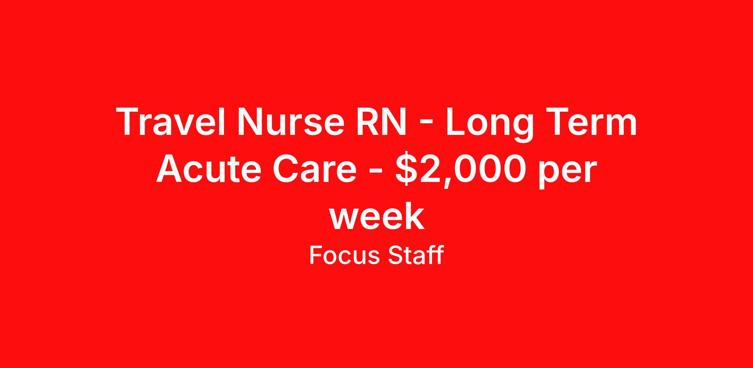 Travel Nurse RN - Long Term Acute Care - $2,000 per week