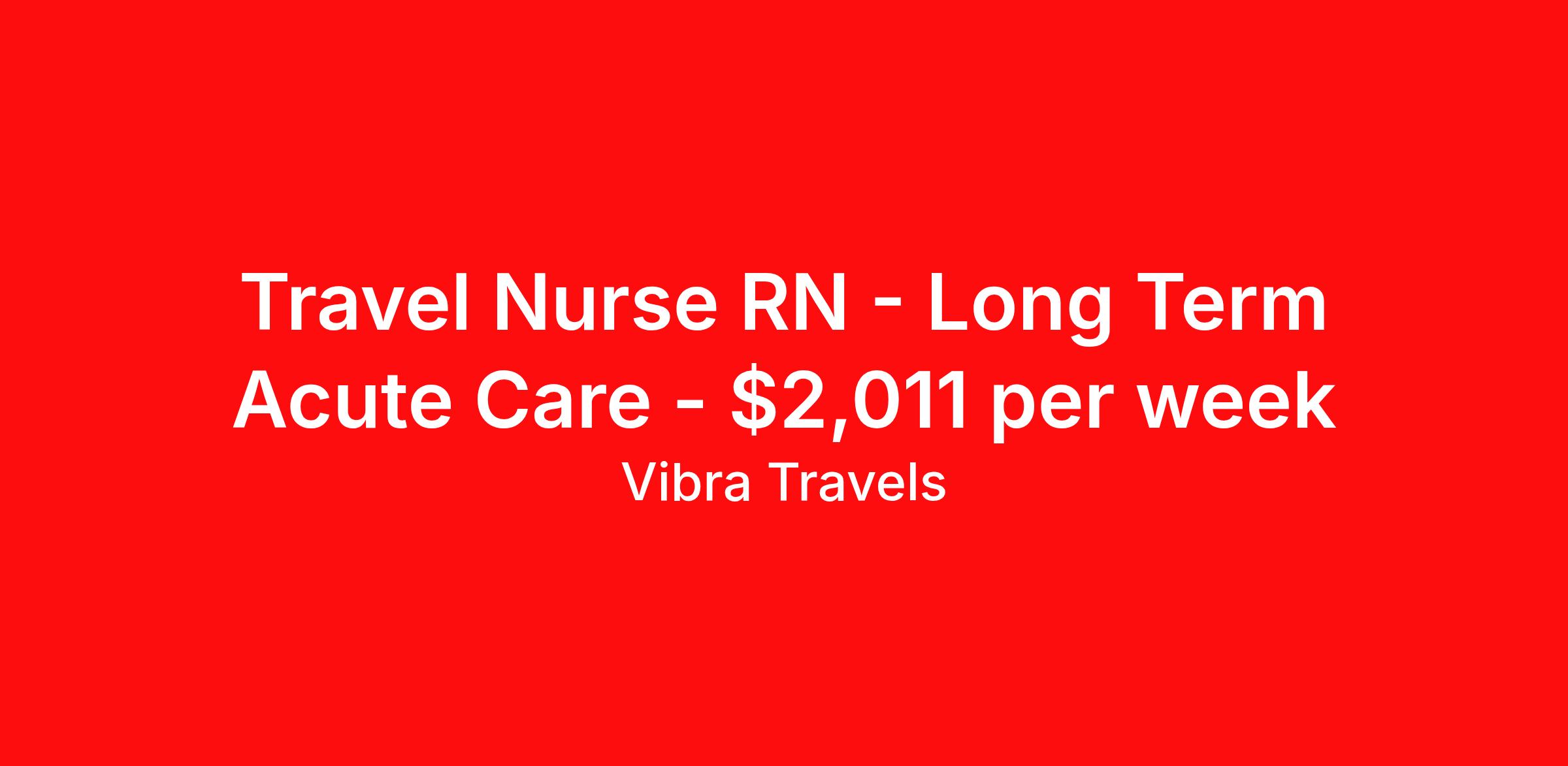 Travel Nurse RN - Long Term Acute Care - $2,011 per week