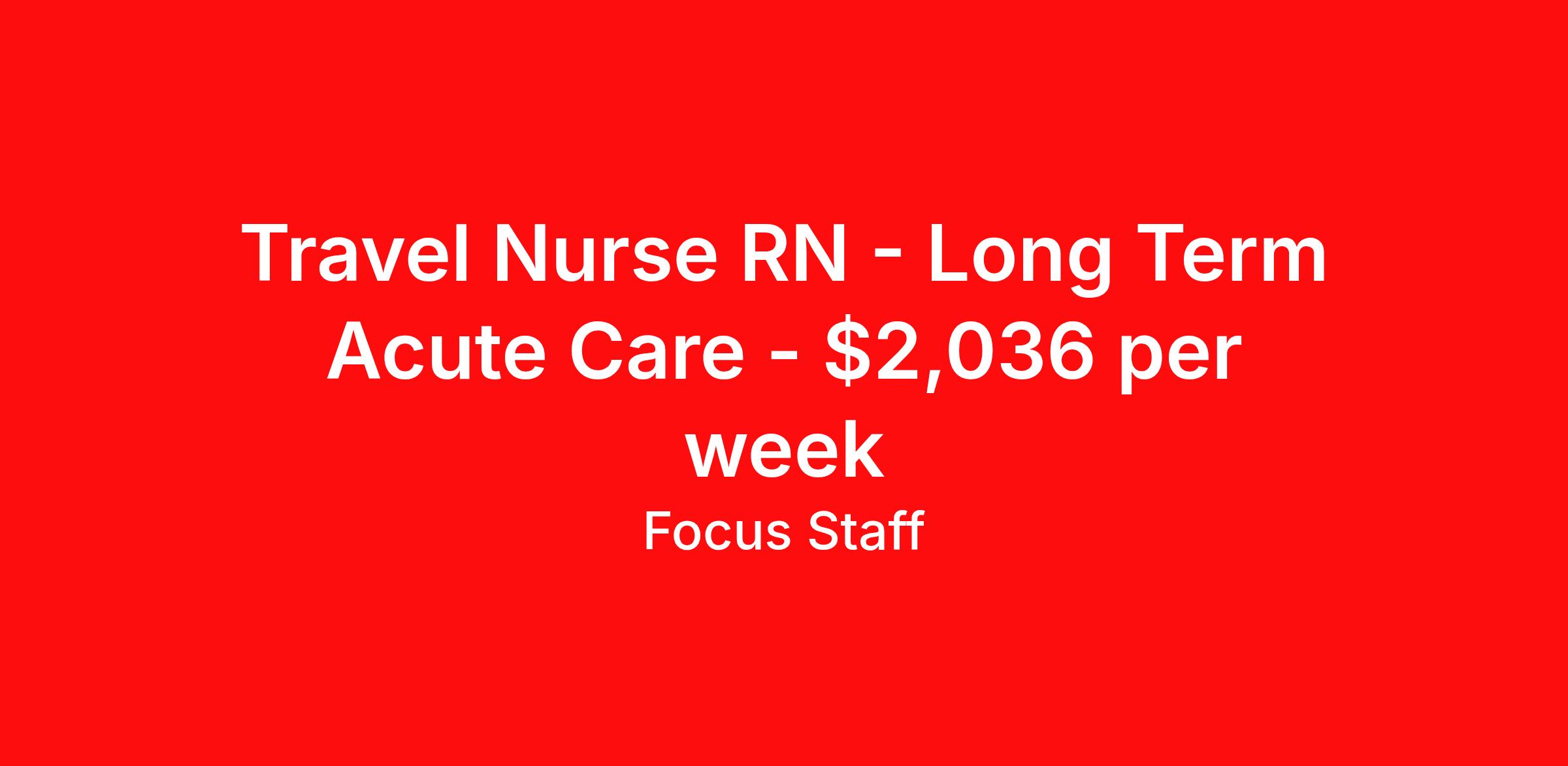 Travel Nurse RN - Long Term Acute Care - $2,036 per week
