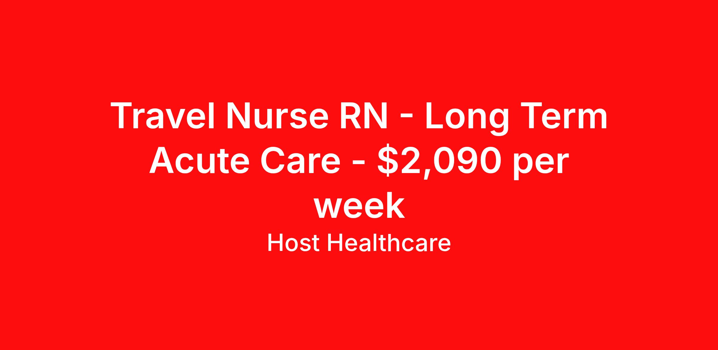 Host Healthcare is seeking a travel nurse RN Long Term Acute Care for a travel nursing job in West Allis, Wisconsin. Job Description & Requirements Specialty: Long Term Acute Care Discipline: RN Duration: 13 weeks 36 hours per week Shift: 12 hours, days Employment Type: Travel Host Healthcare Job ID a1fVX000002xfsPYAQ. Pay package is based on 12 hour shifts and 36 hours per week (subject to confirmation) with tax-free stipend amount to be determined. Posted job title: RN - Long Term Acute Care About Host Healthcare At Host Healthcare, we provide a truly comfortable experience as you explore your travel nursing, therapy, or allied career. We make your travel healthcare journey easy by taking care of all the details, so you don’t have to. We are on a mission to help others live better and we do this by helping the healers of the world be as comfortable as possible. With access to tens of thousands of travel nursing, therapy, and allied jobs in all 50 states, our responsive and friendly recruiters find your dream position based on what’s important to you. During your assignment, get access to premium benefits, including Day 1 medical that continues up to 30 days between assignments, 401K matching, travel reimbursements, dedicated housing support, and more. We also offer 24/7 support from our team and access to our on-staff clinicians so you can feel comfortable and confident throughout your entire assignment. Travel comfortably with Host Healthcare. Benefits Referral bonus School loan reimbursement Vision benefits Wellness and fitness programs Company provided housing options License and certification reimbursement Life insurance Medical benefits Mileage reimbursement Pet insurance Discount program Employee assistance programs Guaranteed Hours Health savings account Holiday Pay 401k retirement plan Continuing Education Dental benefits