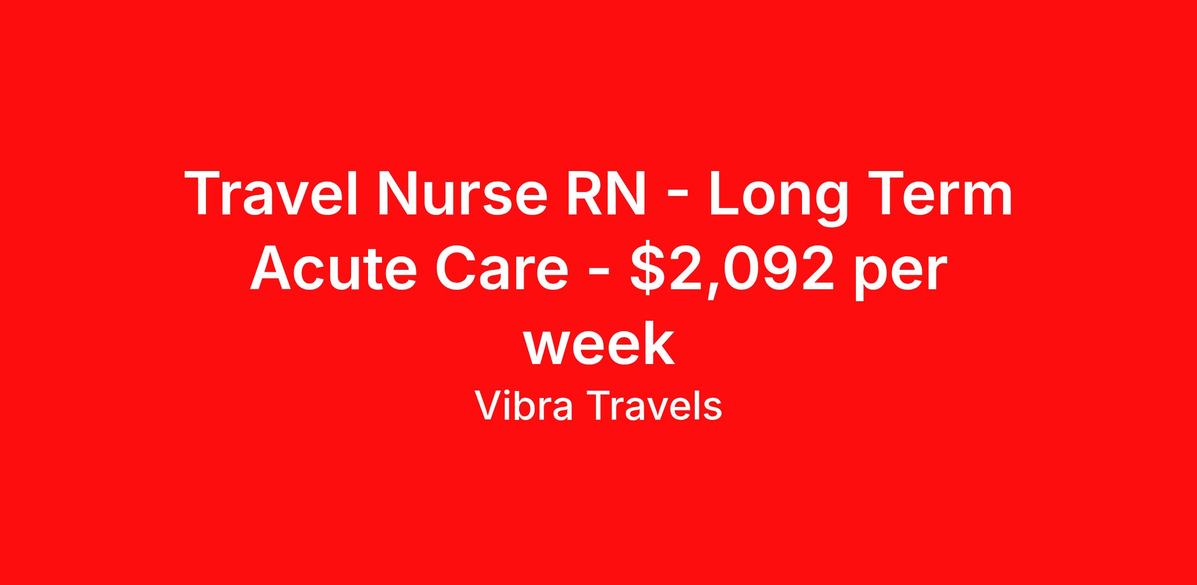 Travel Nurse RN - Long Term Acute Care - $2,092 per week