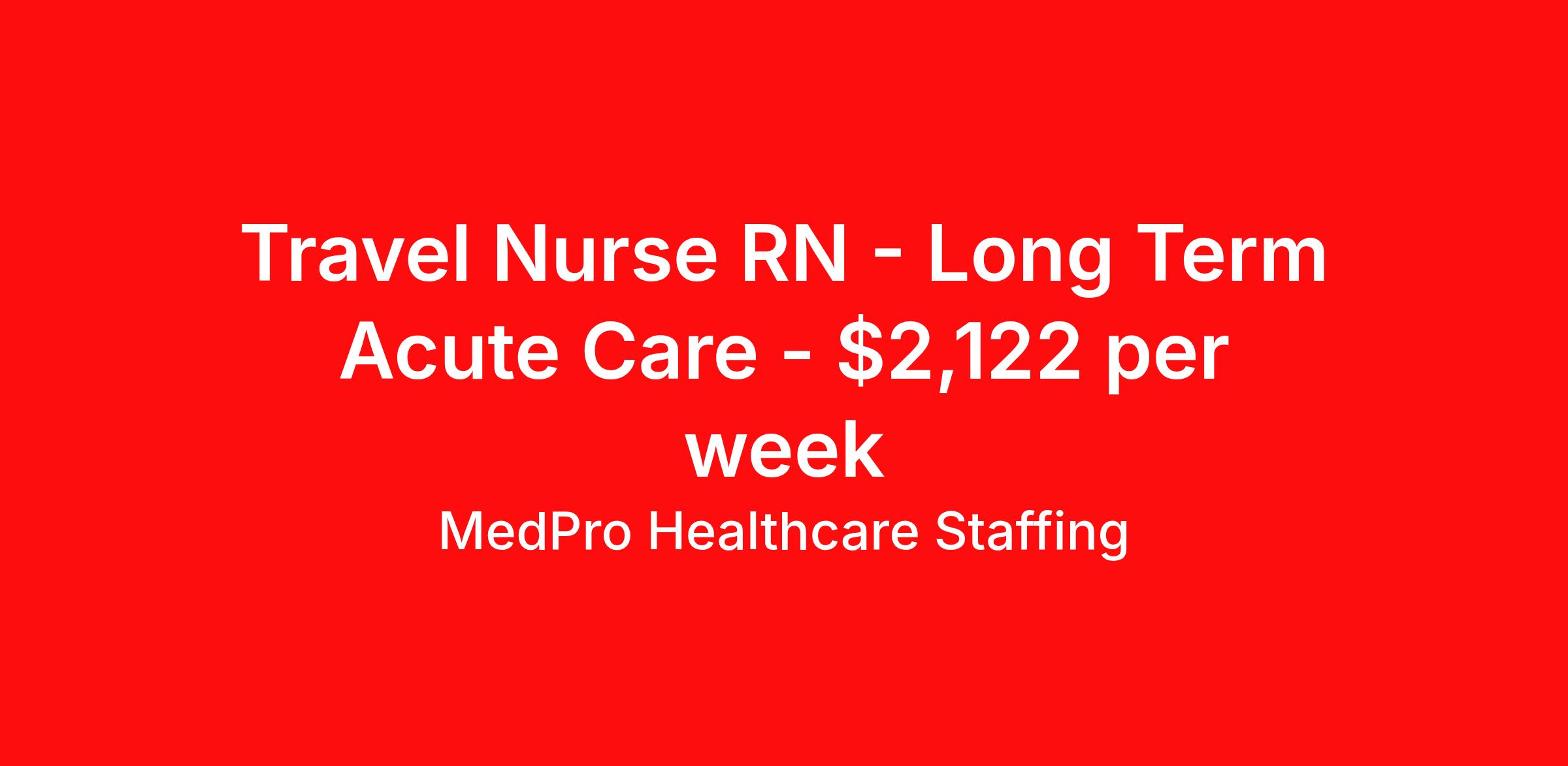 MedPro Healthcare Staffing is seeking a travel nurse RN Long Term Acute Care for a travel nursing job in Morgantown, West Virginia. Job Description & Requirements Specialty: Long Term Acute Care Discipline: RN Start Date: 04/06/2026 Duration: 13 weeks 36 hours per week Shift: 12 hours, days Employment Type: Travel MedPro Healthcare Staffing , a Joint Commission-certified staffing agency, is seeking a quality Long Term Acute Care registered nurse for a travel assignment with one of our top healthcare clients. Requirements Active RN License Degree from accredited nursing program BLS & ACLS Certifications Eighteen months of recent experience in an Long Term Acute Care setting Experience with Vents, Trachs, Drips, EG Tubes and able to read Tele-strips Other requirements to be determined by our client facility Benefits Weekly pay and direct deposit Full coverage of all credentialing fees Private housing or housing allowance Group Health insurance for you and your family Company-paid life and disability insurance Travel reimbursement 401(k) matching Unlimited Referral Bonuses up to $1,000 Duties Responsibilities As part of the LTAC unit, Long Term Acute Care Nurses (RN) are responsible for caring for patients who require extended medical care. Provide care for 5-6 patients. Adjust and perform in fast paced environment Keep up with many admissions and discharges Be able to monitor and administer medications (orally, subcutaneously, and through an IV) Educate patients and family on surgical processes and how to manage their illness/injury Monitor and adjust specialized equipment used on patients, and record and interpret electronic displays Interpret and understand telemetry readings, notifying appropriate medical team members of any irregularities Perform the duties required of a registered nurse at all times Care for patients with pulmonary HTN, respiratory failure, COPD, CHF, and A-Fib Use computer equipment to monitor cardiac and other vital information Start IV’s, draw blood, see the patient from start to finish About Agency MedPro Healthcare Staffing is a Joint Commission certified provider of contract staffing services. Since 1983, we have placed nursing and allied travelers in top healthcare facilities nationwide. Join us today for your very own MedPro Experience®. If qualified and interested, please call for immediate consideration. MedPro Staffing is an Equal Opportunity Employer. All applicants will be considered for employment without attention to race, color, religion, national origin, age, sex, disability, marital status or veteran status. Key Words: Long Term Acute Care Nurse, RN-LTAC, Long Term Acute Care Nursing positions, Travel Nurse, Contract Nurse, Agency Nurse, LTAC, LTAC Contracts, Registered Nurse, LTAC Nurse, RN, Travel Nursing *Weekly payment estimates are intended for informational purposes only and include a gross estimate of hourly wages and reimbursements for meal, incidental, and housing expenses. Your recruiter will confirm your eligibility and provide additional details. MedPro Job ID a0Fcx00000HsPajEAF. Pay package is based on 12 hour shifts and 36 hours per week (subject to confirmation) with tax-free stipend amount to be determined. Posted job title: Long Term Acute Care Registered Nurse Nursing: LTAC - Long Term Acute Care. About MedPro Healthcare Staffing At MedPro Healthcare Staffing , we believe no one cares more for caregivers than we do. Our mission is simple: you focus on your patients, and we’ll take care of the rest. As a Joint Commission-certified leader in temporary and contract healthcare staffing since 1983, MedPro has proudly connected nursing and allied travelers with top healthcare facilities across the nation. With thousands of job opportunities available nationwide, we make it easy to find assignments that align with your goals and lifestyle. Our on-staff clinical support team—alongside a compassionate group of experienced recruiters—provides hands-on guidance every step of the way. From Day 1 medical benefits and a 401(k) plan to personalized career support, we’re committed to ensuring every professional we serve feels valued, cared for, and empowered to succeed. Guided by a CEO who is a Registered Nurse, MedPro is built on a foundation of clinical insight and genuine compassion for the caregiving community. Through The MedPro Experience® , we deliver travel assignments that are rewarding, memorable, and designed to help you DREAM big, EXPLORE often, and ACHIEVE greatness. Benefits Day 1 medical, dental, and vision benefits for you and your family Weekly pay and direct deposit Unlimited Referral Bonuses starting at $500 On Staff Clinical Support Team Access to nationwide travel assignments MPX Mobile app -24/7 real-time access to jobs, credentials, assignment details, and more Full coverage of all credentialing fees Private housing or housing allowance Tax Free Per Diems, Housing Stipends and Travel Reimbursements Company-paid life and disability insurance Travel reimbursement 401(k) matching Benefits Weekly pay Referral bonus Employee assistance programs
