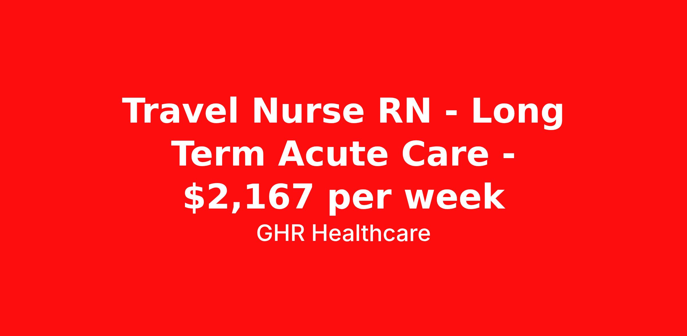 Travel Nurse RN - Long Term Acute Care - $2,167 per week