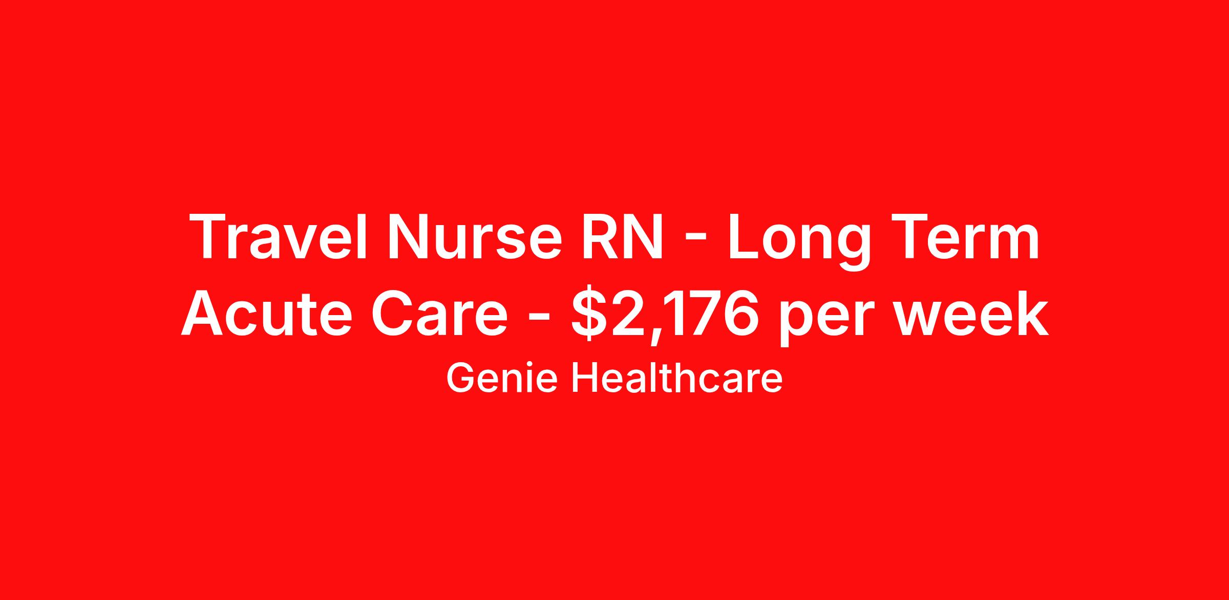 Genie Healthcare is seeking a travel nurse RN Long Term Acute Care for a travel nursing job in Columbia Falls, Montana. Job Description & Requirements Specialty: Long Term Acute Care Discipline: RN Start Date: 04/06/2026 Duration: 13 weeks 36 hours per week Shift: 12 hours, flexible Employment Type: Travel Genie Healthcare is looking for a RN to work in Long Term Acute Care (LTAC) for a 12.71 weeks travel assignment located in , MT for the Shift (3x12hr flex-Please verify shift details with recruiter , 19:00:00-07:00:00, 12.00-3). Pay and benefits packages are estimated based on client bill rate at time the job was posted. These rates are subject to change. Exact pay and benefits vary based on several things, including, but not limited to, guaranteed hours, client changes in bill rate, experience, etc. Benefits: Medical Insurance, Dental Insurance, Vision Insurance, 401(k) with company matching (50% up to 6% of what you contribute) Genie Healthcare Job ID 17974834. Pay package is based on 12 hour shifts and 36.0 hours per week (subject to confirmation) with tax-free stipend amount to be determined. Posted job title: RN:Long Term Acute Care (LTAC),19:00:00-07:00:00 About Genie Healthcare Genie Healthcare is one of the fastest growing Nurse Travel Agencies in the USA. Genie serves hundreds of facilities and has over 4000 current travel RN contracts open at any given time. Genie provides travel RN’s flexibility, support, top pay scale, housing and the 1 rated, multi-state health insurance coverage. Genie Healthcare carries with it a commitment to providing a comprehensive level of service and quality care. Growing from a small team of eager recruiters to a company with satisfied clients in nearly every corner of the nation, delivering excellence in patient and customer care is the key to Genie’s success. The management team has 20 years of experience in workforce solutions and staffing in medical and non-medical fields, roles ranging from Clerical job to Cardiologist to software developer to CEO.