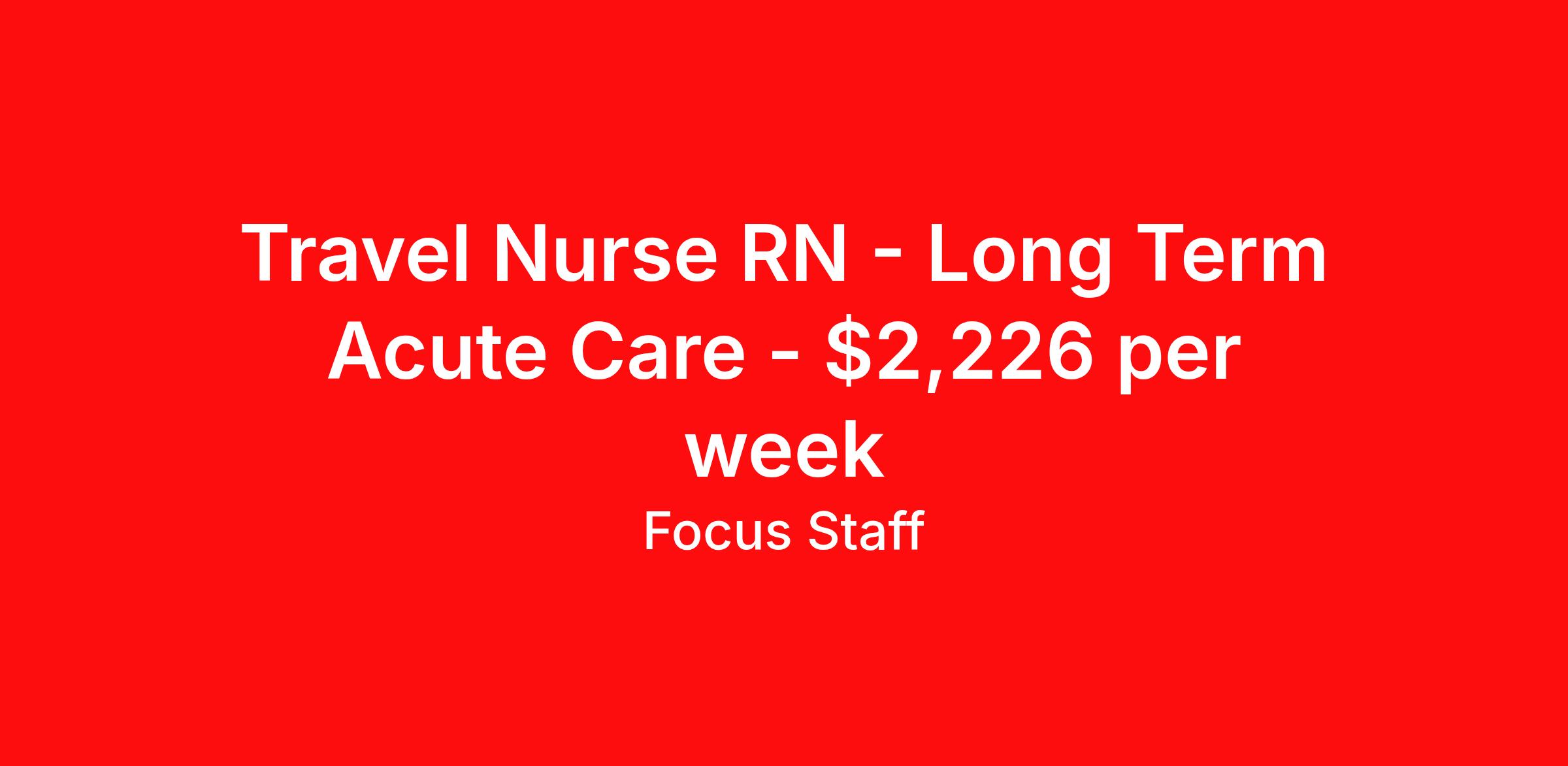 Travel Nurse RN - Long Term Acute Care - $2,226 per week