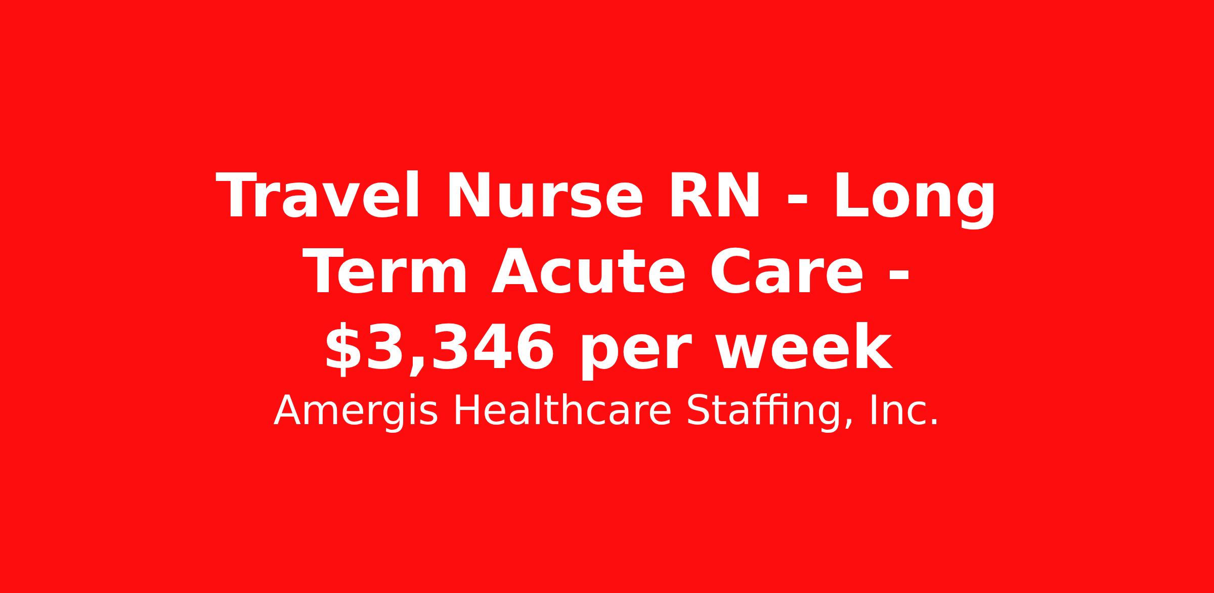 Amergis Healthcare Staffing, Inc. is seeking a travel nurse RN Long Term Acute Care for a travel nursing job in Johnstown, Colorado. Job Description & Requirements Specialty: Long Term Acute Care Discipline: RN Duration: 8 weeks 48 hours per week Shift: 12 hours Employment Type: Travel The Long-Term Acute Care Registered Nurse provides planning and delivery of direct and indirect patient care to medically complex patients in long-term acute settings. Minimum Requirements: Current RN license for the state in which the nurse practices in One (1) year nursing experience in a long-term acute care facility preferred Experience in acute rehabilitation for vents, wound care, cardiac, and stable post trauma patients Current CPR if applicable TB questionnaire, PPD or chest x-ray if applicable Current Health certificate (per contract or state regulation) Must meet all federal, state and local requirements Must be at least 18 years of age Benefits At Amergis, we firmly believe that our employees are the heartbeat of our organization and we are happy to offer the following benefits: Competitive pay & weekly paychecks Health, dental, vision, and life insurance 401(k) savings plan Awards and recognition programs *Benefit eligibility is dependent on employment status. CO Specific Benefits: Medical/Prescription, Dental, Vision, Health Advocacy (company paid if enrolled Medical), Health Advocate Employee Assistance Program, Health Savings Account , 401(k), 401(k) Company Match, Profit Sharing, Short Term Disability, Long Term Disability, Primary Caregiver Leave, Parental Leave, Life and Basic Accidental Death & Dismemberment Insurance, Voluntary Life and Accidental Death & Dismemberment Insurance, Hospital Expense Protection Plan, Critical Illness Insurance, Accident Insurance, Dependent Care Flexible Spending Account, Home and Auto Insurance, Pet Insurance, Transportation Benefits, CommonBond, Educational Assistance Program, College Partnership Program, Paid Time Off/Company Holidays About Amergis Amergis, formerly known as Maxim Healthcare Staffing, has served our clients and communities by connecting people to the work that matters since 1988. We provide meaningful opportunities to our extensive network of healthcare and school-based professionals, ready to work in any hospital, government facility, or school. Through partnership and innovation, Amergis creates unmatched staffing experiences to deliver the best workforce solutions. Amergis is an equal opportunity/affirmative action employer. All qualified applicants will receive consideration for employment without regard to sex, gender identity, sexual orientation, race, color, religion, national origin, disability, protected Veteran status, age, or any other characteristic protected by law. Amergis Job ID 1104999. Pay package is based on 12 hour shifts and 48 hours per week (subject to confirmation) with tax-free stipend amount to be determined. Posted job title: LTAC RN About Amergis Healthcare Staffing, Inc. Amergis, formerly known as Maxim Healthcare Staffing, has served our clients and communities by connecting people to the work that matters since 1988. We provide meaningful opportunities to our extensive network of healthcare and school-based professionals, ready to work in any hospital, government facility, or school. Through partnership and innovation, Amergis creates unmatched staffing experiences to deliver the best workforce solutions.
