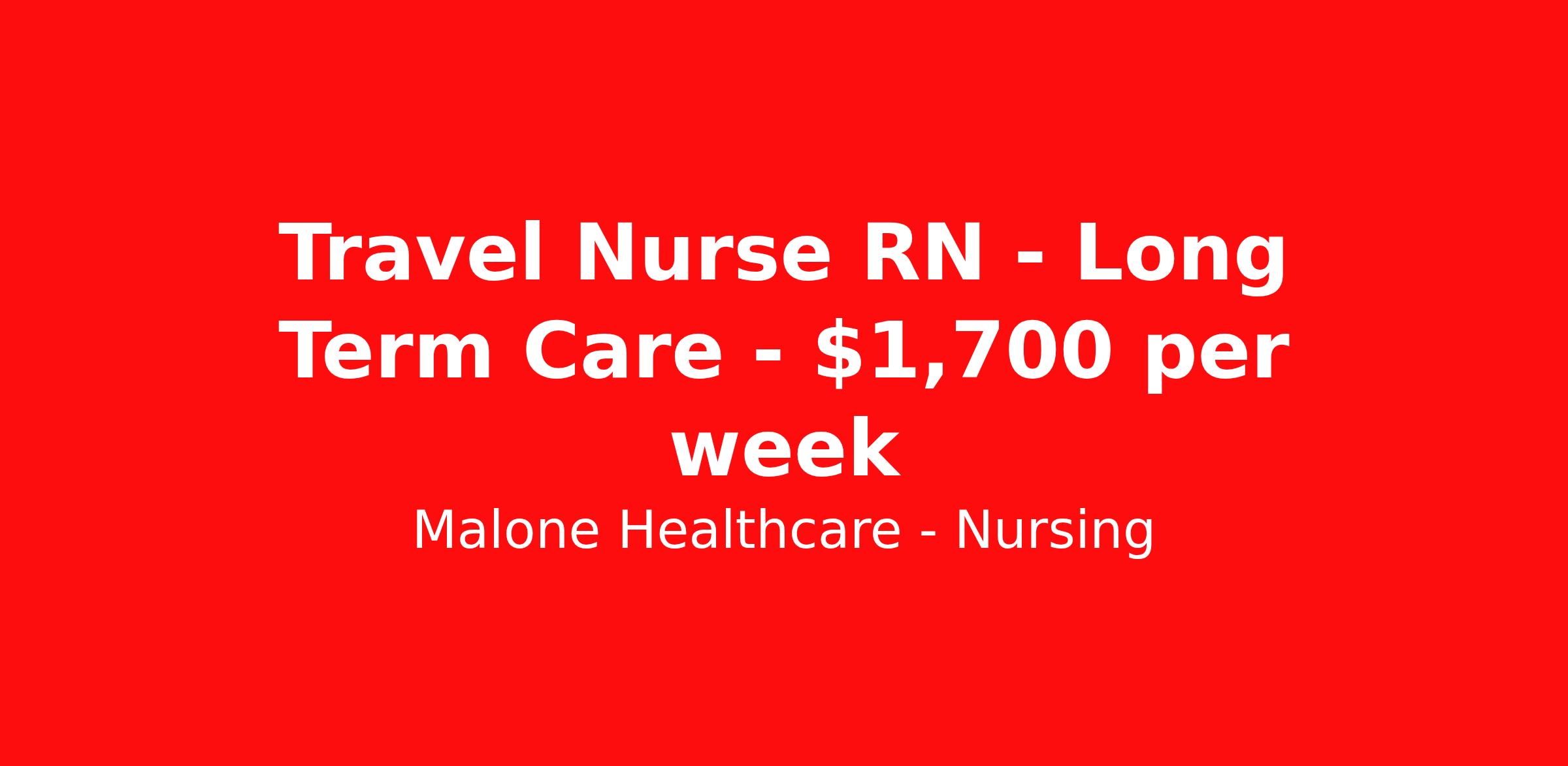 Malone Healthcare - Nursing is seeking a travel nurse RN Long Term Care for a travel nursing job in Prophetstown, Illinois. Job Description & Requirements Specialty: Long Term Care Discipline: RN Start Date: 04/27/2026 Duration: 3 weeks 36 hours per week Shift: 12 hours, nights Employment Type: Travel Must have 2 recent years of experience in specialty in order to qualify for this position. We can request a longer contract. About Malone Healthcare - Nursing With a commitment to providing a higher standard of service and experience in patient care, Malone Healthcare places expert nurses and allied health professionals in rewarding careers throughout the United States. As a leading healthcare staffing agency, Malone’s focus on compliance and integrity translates to a seamless experience for our team members and partner facilities. When you work with Malone Healthcare, you can rely on over 50 years of proven experience placing exceptional professionals in quality healthcare settings. Benefits Weekly pay Holiday Pay Guaranteed Hours Continuing Education 401k retirement plan Pet insurance Referral bonus Medical benefits Dental benefits Vision benefits License and certification reimbursement Life insurance