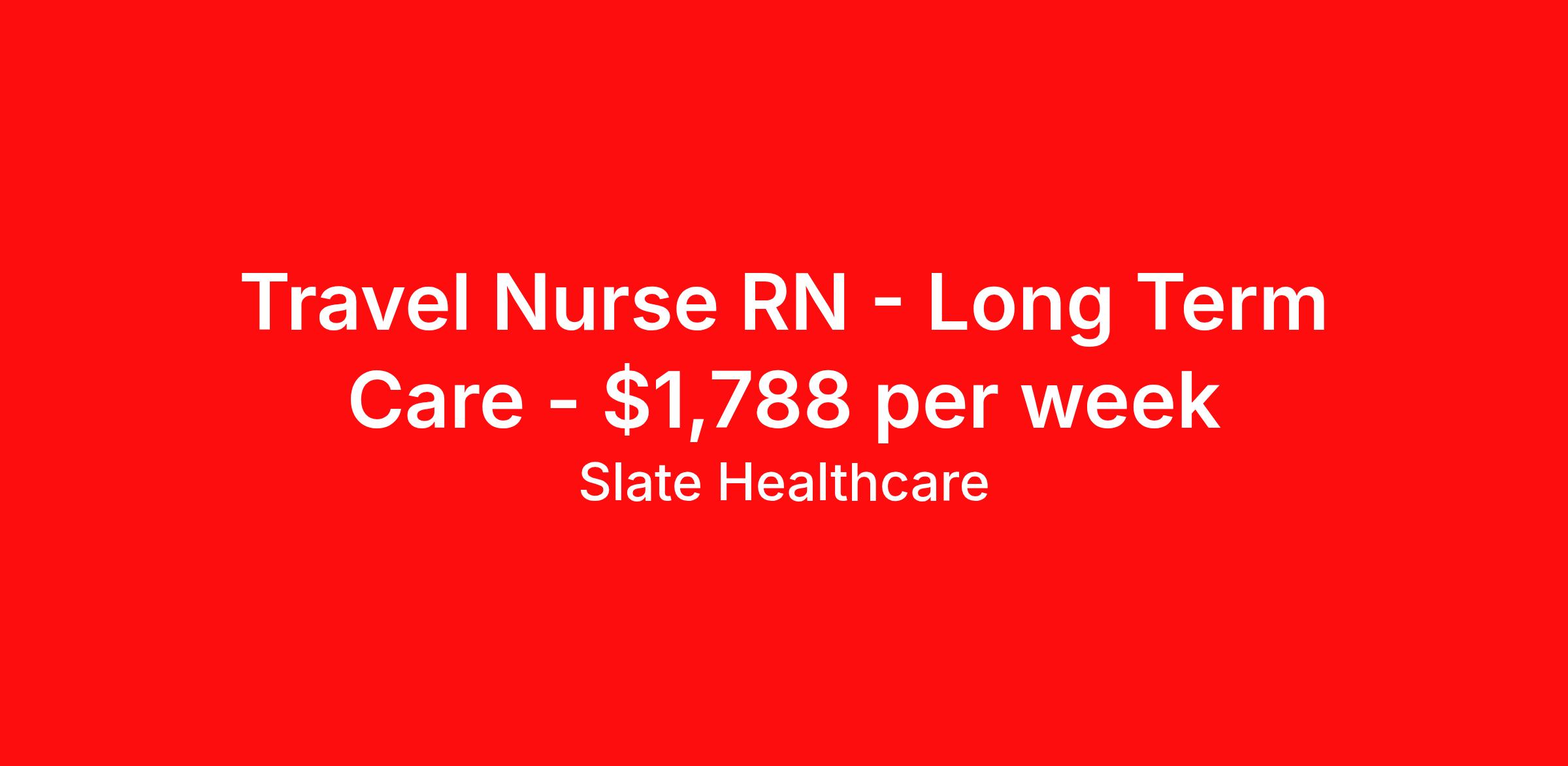Slate Healthcare is seeking a travel nurse RN Long Term Care for a travel nursing job in Milbank, South Dakota. Job Description & Requirements Specialty: Long Term Care Discipline: RN Start Date: ASAP Duration: 6 weeks 36 hours per week Shift: 12 hours, days Employment Type: Travel Job Name: RN - Days Type of Facility: LTC / Nursing Homes Requested Start Date: End Date: Shifts: Variable - Days Hours: 12s Housing Type: Guaranteed Hours: 36 Hours Slate Healthcare Job ID c78d7fc0-8acb-4bf3-895f-9ff747d52381. Pay package is based on 12 hour shifts and 36 hours per week (subject to confirmation) with tax-free stipend amount to be determined. About Slate Healthcare Slate Healthcare is a premier travel healthcare staffing agency, connecting healthcare professionals with thousands of opportunities at top-tier hospitals and facilities across the country. We’re committed to supporting nurses and allied health professionals in building stable, fulfilling careers—while embracing the freedom and excitement that comes with travel. Our goal is simple: to offer flexibility, competitive pay, and personalized placements that align with each clinician’s lifestyle and career goals. At Slate, we empower our professionals to choose when and where they work, while ensuring they receive the highest compensation possible—because we believe that exceptional care starts with empowered caregivers.