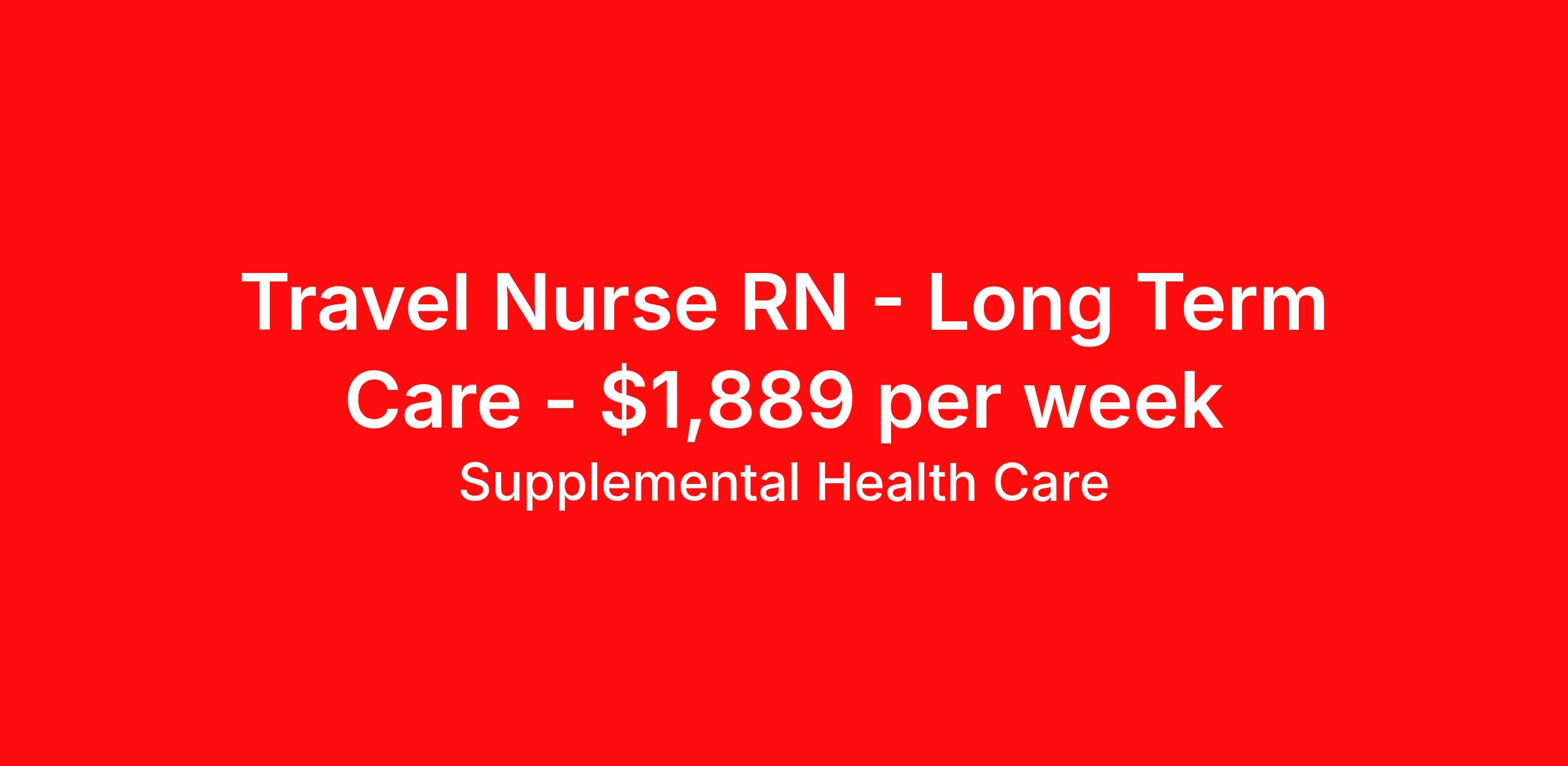 Supplemental Health Care is seeking a travel nurse RN Long Term Care for a travel nursing job in Sturgis, South Dakota. Job Description & Requirements Specialty: Long Term Care Discipline: RN Start Date: ASAP Duration: 13 weeks 36 hours per week Shift: 12 hours, days, nights Employment Type: Travel Job Description: Supplemental Health Care is connecting Long Term Care/chronic Care Registered Nurses with top-tier hospital contracts in Sturgis, South Dakota. Travel or stay local, either way, we’ll guide you to an opportunity that matches your goals, offering excellent pay, benefits, and support. Qualifications: Current South Dakota Registered Nurse License / Certification American Heart Association BLS 1 to 2 years of recent Long Term Care/chronic Care experience Long Term Care/chronic Care Registered Nurse Contract Details: $1,728 - $1,889 per week* Weekly pay 13-week full-time contract with possibility to extend AM shifts available 36 hours per week *Estimated weekly payment may include both taxable wages and tax-free reimbursements for meals, housing, and incidentals. Please speak with a recruiter for details. What We Offer: Full medical, dental, vision, life, and even pet insurance! Round the clock support. No matter where you are or what time it is, Supplemental Health Care is standing by. SHC's Share the Care referral program is the most dynamic, profitable referral program in the industry. 401(k) Retirement Savings Program with a wide range of investment options. Discounted and free online access to CEU courses through Supplemental University. Apply now to launch your next Long Term Care/chronic Care Registered Nurse assignment, or ask our team about other exciting Registered Nurse opportunities. Supplemental Health Care is an Equal Opportunity Employer. All candidates, including veterans and those with disabilities, are encouraged to apply. SHC will consider for employment qualified applicants with criminal histories in a manner consistent with the requirements of applicable local, state, or federal law. To learn more, visit www.shccares.com/eeo Supplemental Health Care Job ID 1471714. Pay package is based on 12 hour shifts and 36 hours per week (subject to confirmation) with tax-free stipend amount to be determined. Posted job title: Long Term Care/chronic Care Registered Nurse About Supplemental Health Care At Supplemental Health Care, a simple belief in the power of caring guides a unique commitment to world-class service in healthcare staffing. For 40 years, we’ve supported talented professionals pursuing their life calling in hospitals, schools, home health, corrections, behavioral health, and other settings. At SHC, we inspire vital connections and enrich lives and inspire better outcomes. As recipients of the Best in Staffing Awards for both Client and Talent, Supplemental Health Care is proud to be among only 2% of staffing companies singled out for the distinction based on the real feedback of our employees and the clients we serve. SHC has also earned The Joint Commission’s Gold Seal of Approval and is named among the Largest Health Care Staffing companies in the United States by Staffing Industry Analysts. We are also thrilled to recognize our very own SLP, Dr. Kelly Byrd as the American Staffing Association 2024 National Staffing Employee of the Year and Health Care Sector All-Star. We’re honored to connect Dr. Byrd to employment, share her incredible story, and support her family literacy nonprofit. For everyone that we serve, SHC is the place where caring hearts thrive. Benefits Referral bonus Benefits start day 1 401k retirement plan Continuing Education Discount program Health savings account